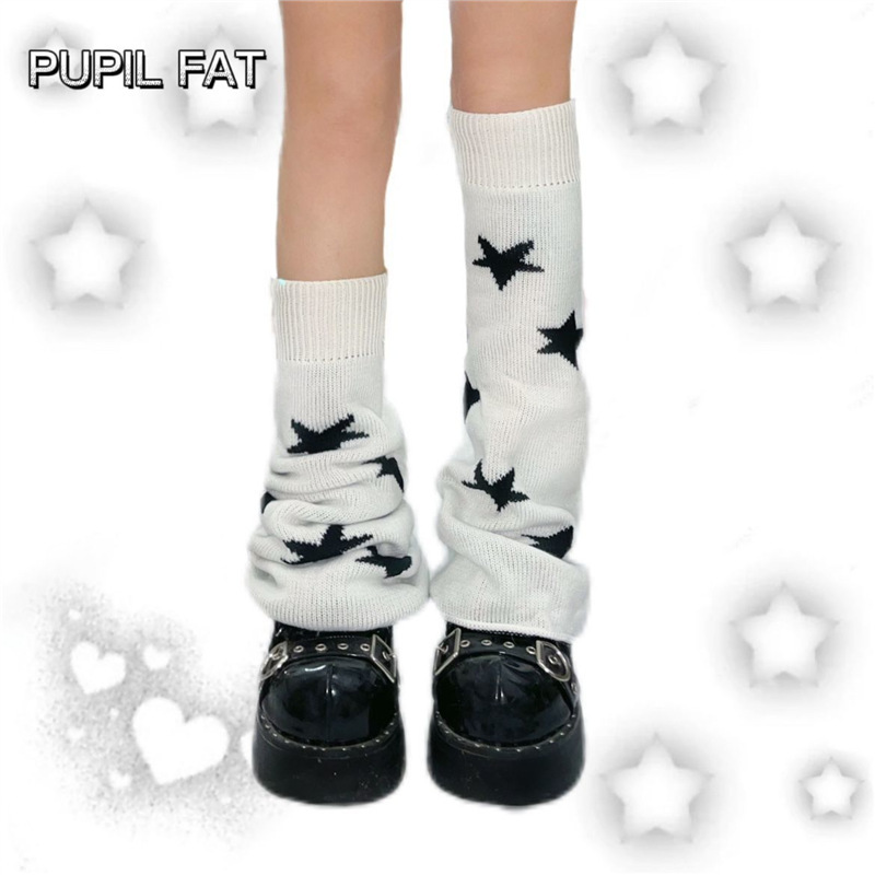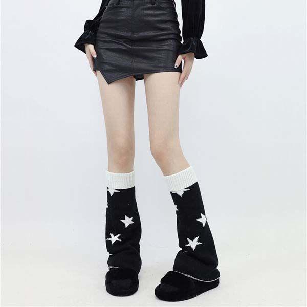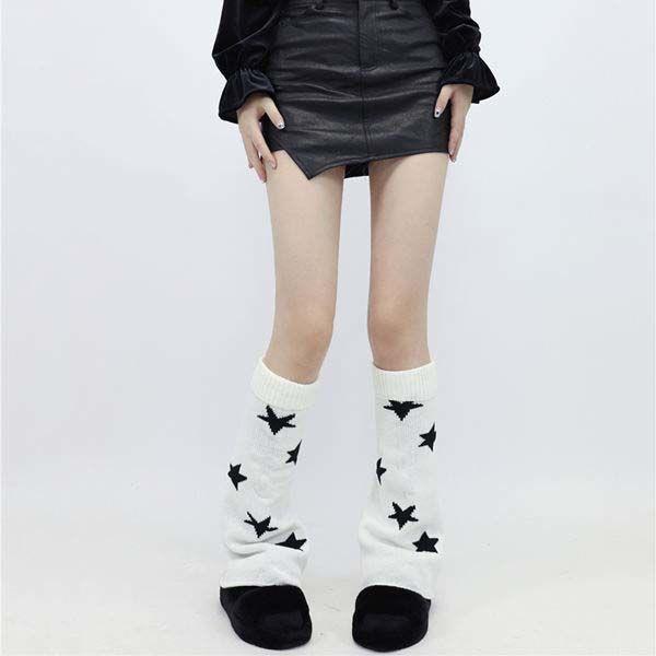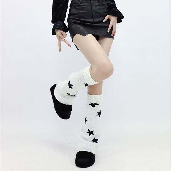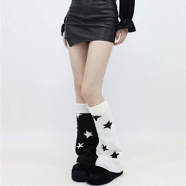 Y2k Японская горячая девушка черно-белая звезда в двухсторонней трикотажной ножке