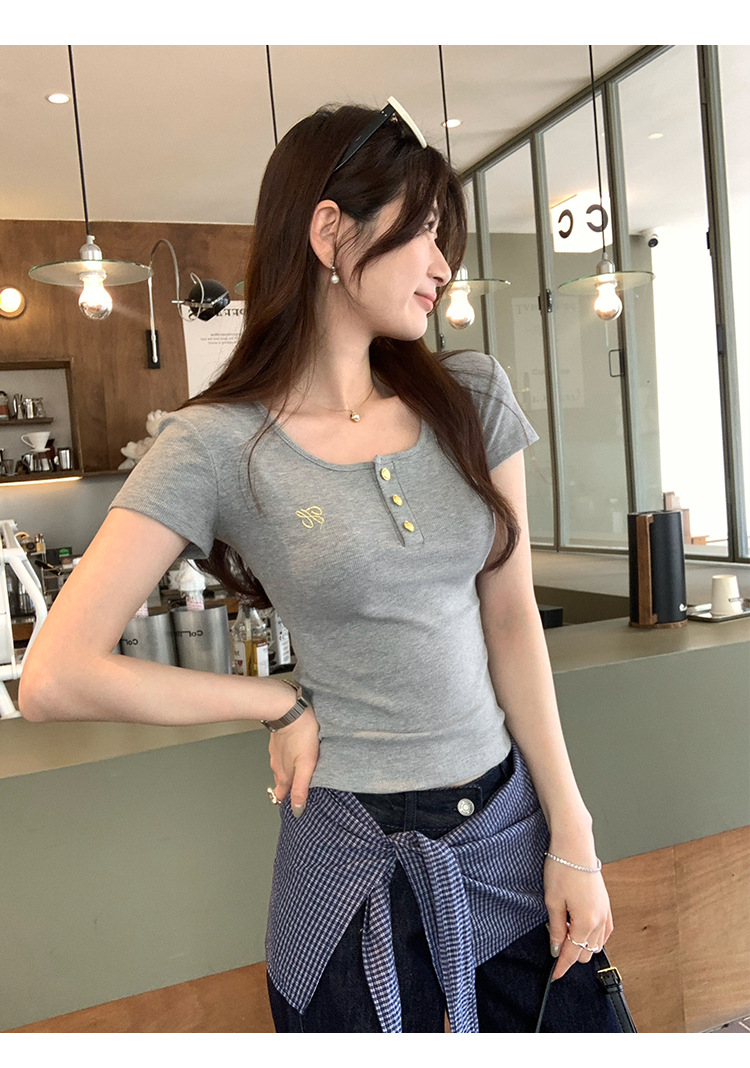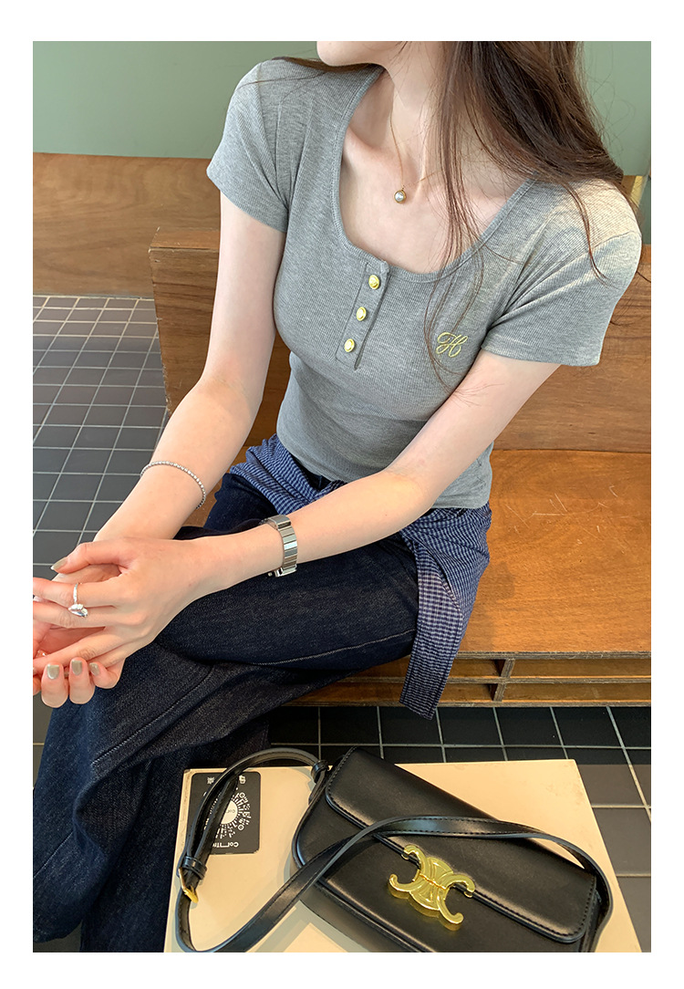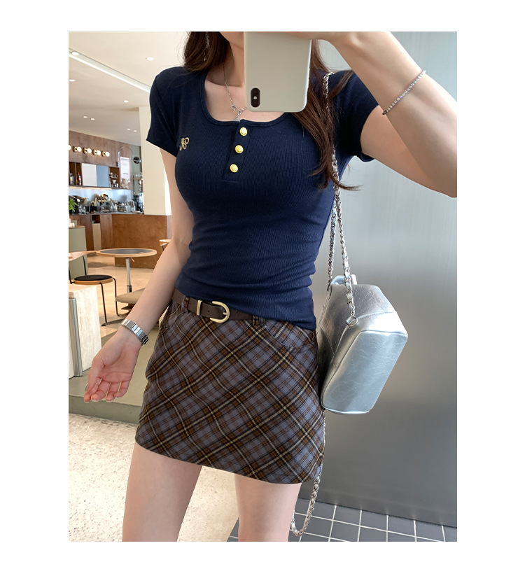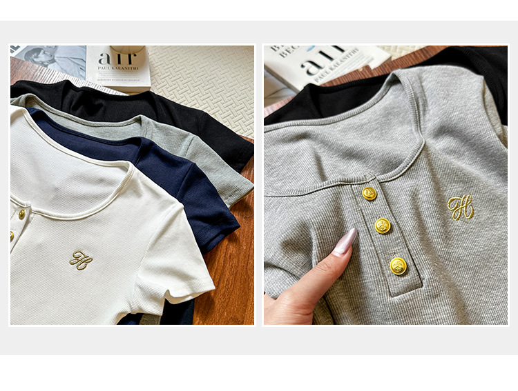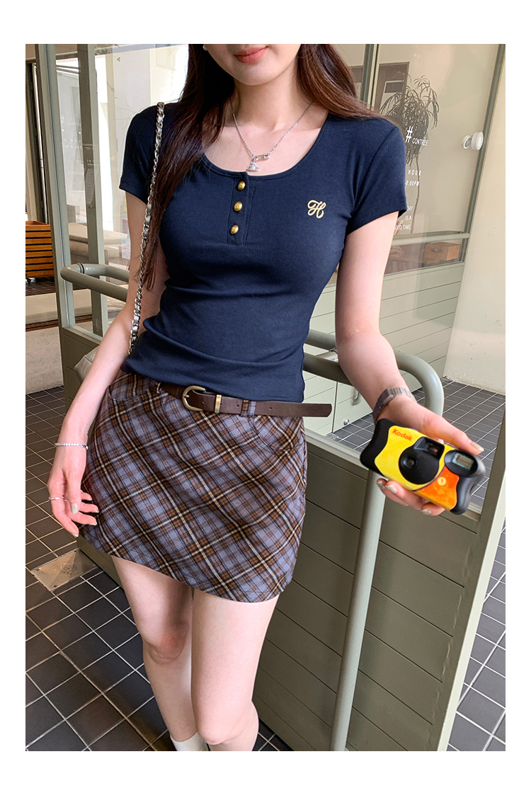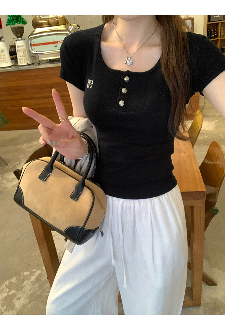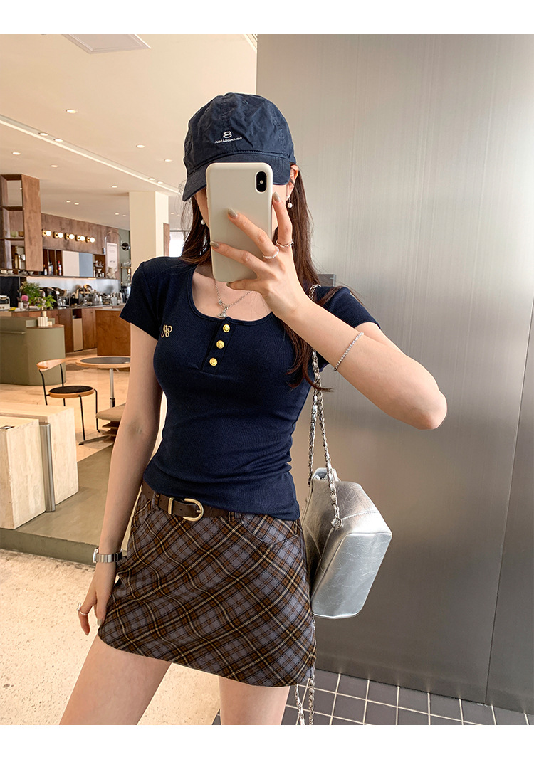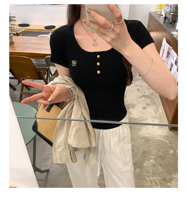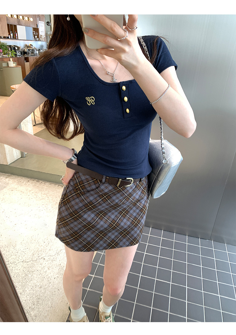 Женская футболка с коротким рукавом и вышивкой, темно-синяя, летняя новинка 2026 года, американский стиль, облегающий топ с круглым вырезом в стиле «Pure Desire Spicy Girl».