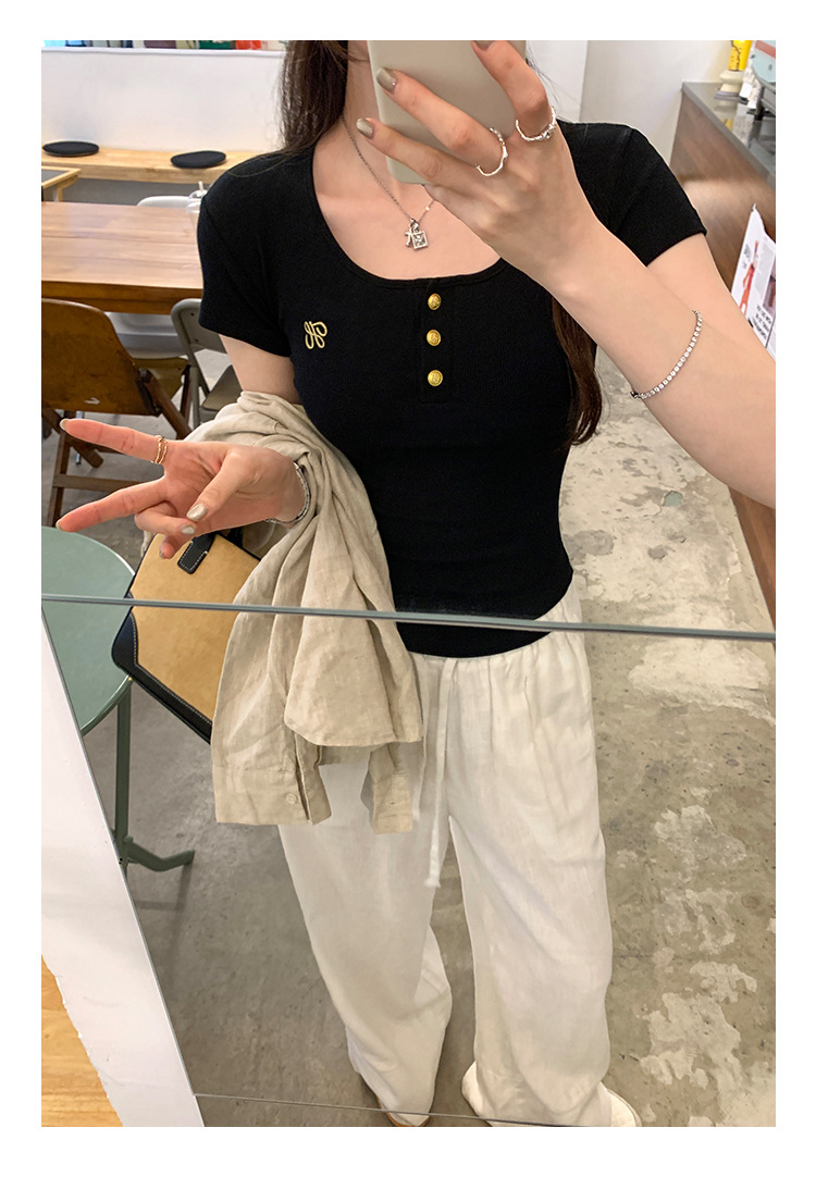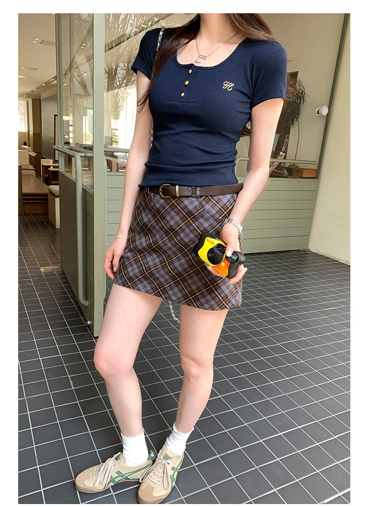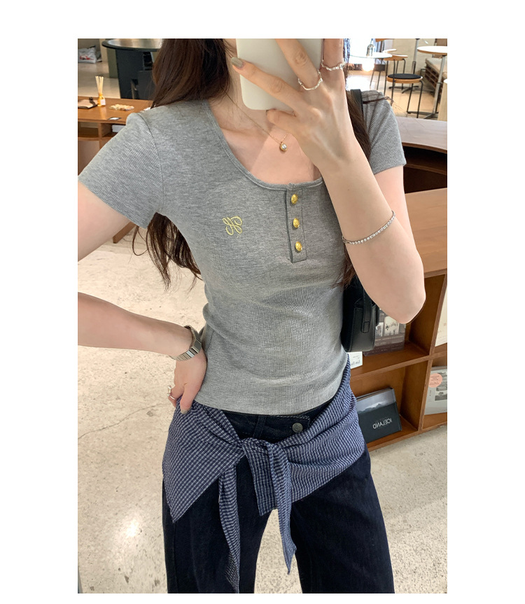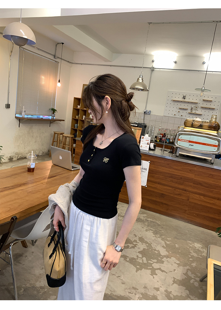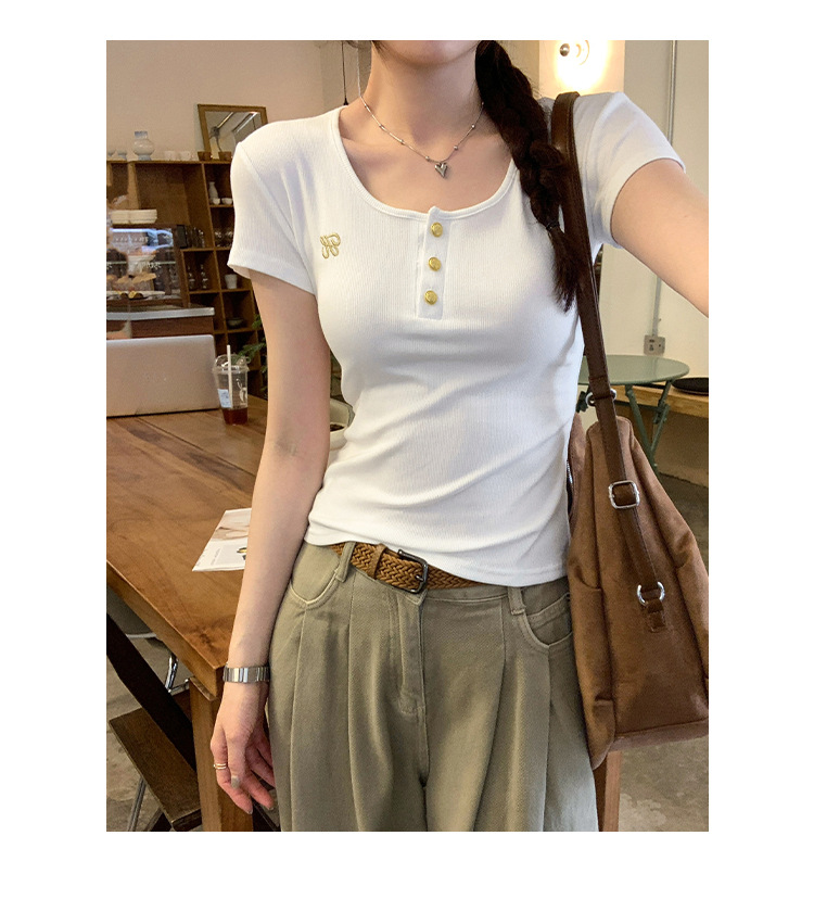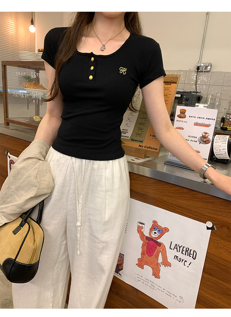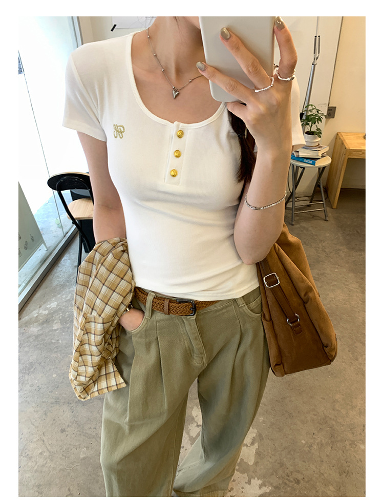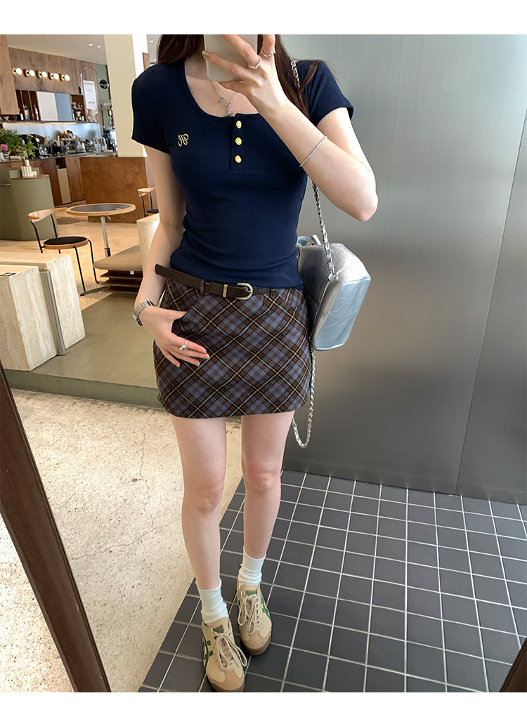 Женская футболка с коротким рукавом и вышивкой, темно-синяя, летняя новинка 2026 года, американский стиль, облегающий топ с круглым вырезом в стиле «Pure Desire Spicy Girl».