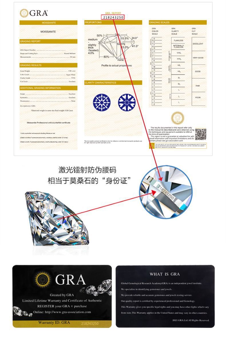 1 карат [экономичный муассанит класса E-D] + сертификат GRA; 1 карат [высококачественный муассанит класса D] + сертификат GRA; 1 карат [Южноафриканский муассанит класса D+] + сертификат GRA