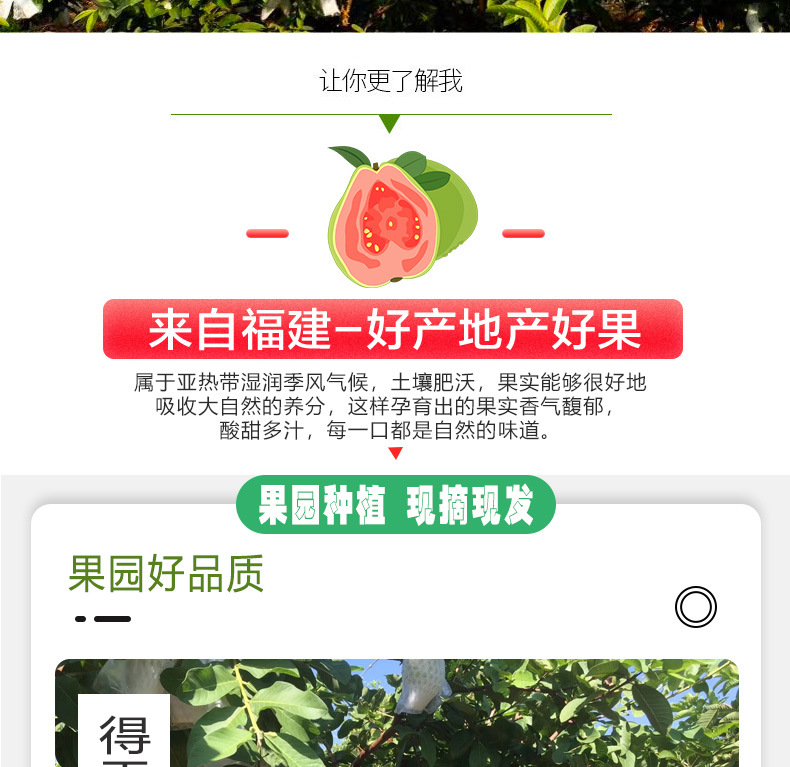 Плоды гуавы сладкие и освежающие, с красной мякотью, доступны круглый год. Только что собранные, они ароматные, хрустящие, сладкие, с ноткой вкуса кислой сливы.