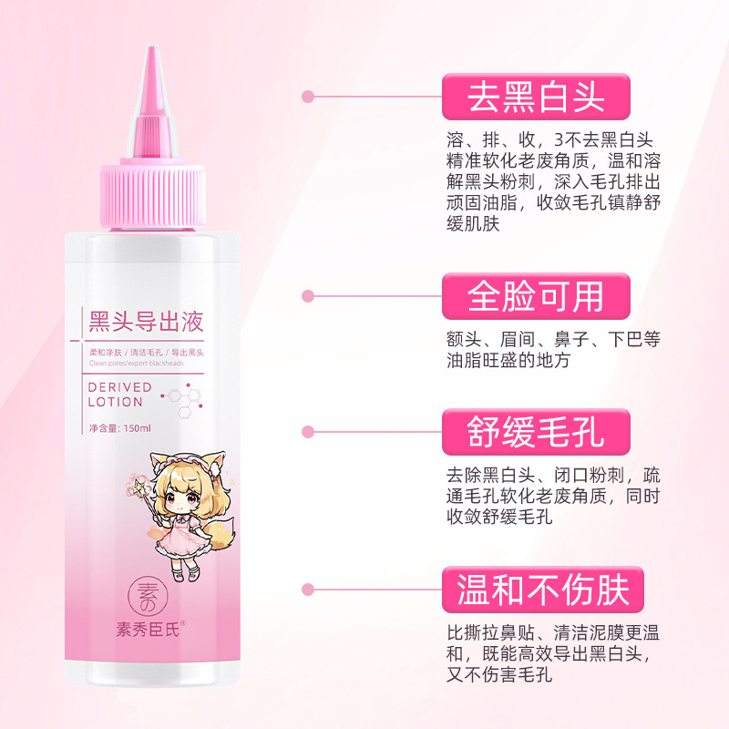Экспортная жидкость от черных точек Су Сючэна мягко растворяет и удаляет черные точки и прыщи, освежает и контролирует жирность, мягко очищает и очищает кожу.