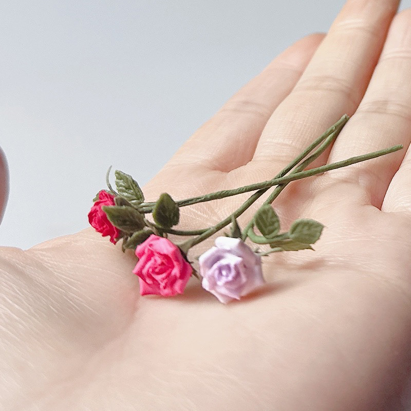 Имитация листьев розы, маленький цветок, аксессуары для кукольного домика, миниатюрные украшения для кукольного домика, мини-растения