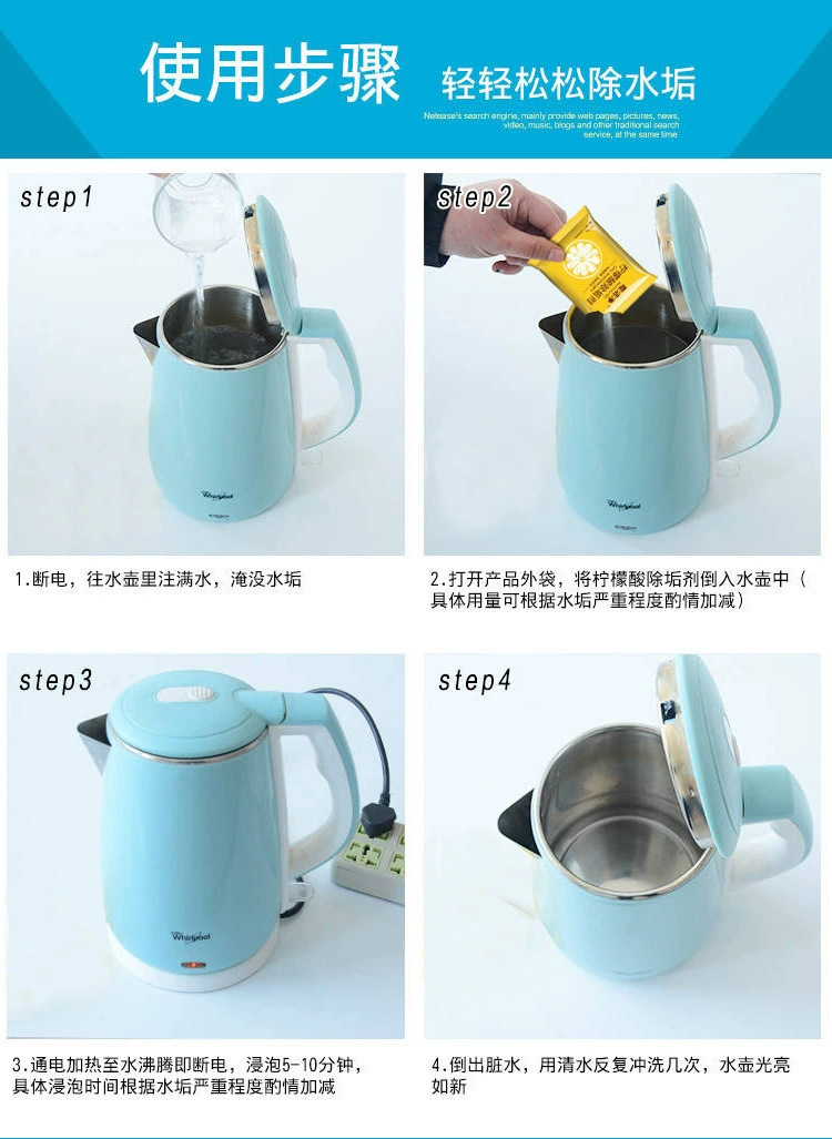 Лимонная кислота средство для удаления накипи Электрический чайник диспенсер для очистки накипи моющее средство Оптовая продажа высокоэффективное очищающее средство для очистки от накипи
