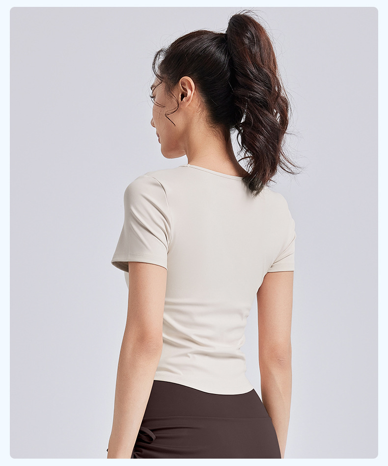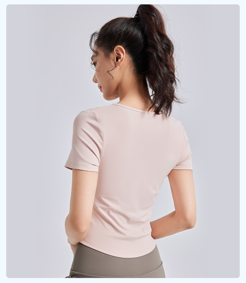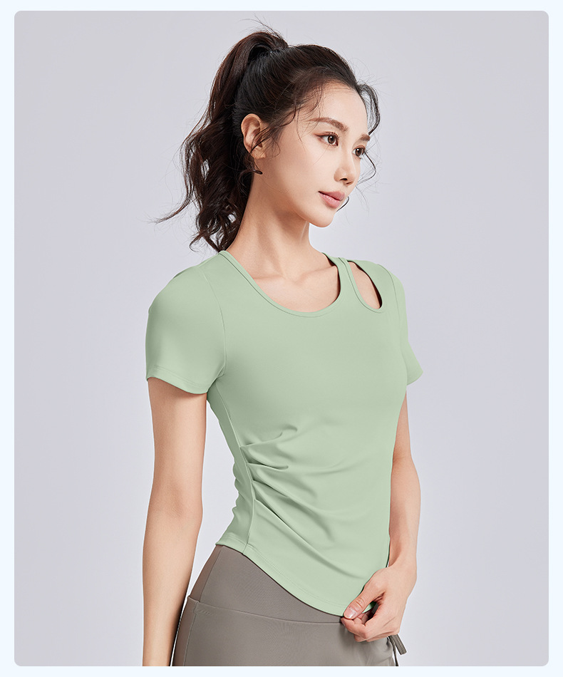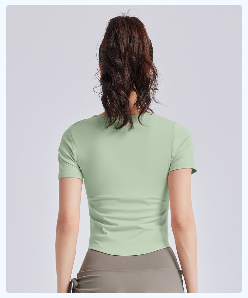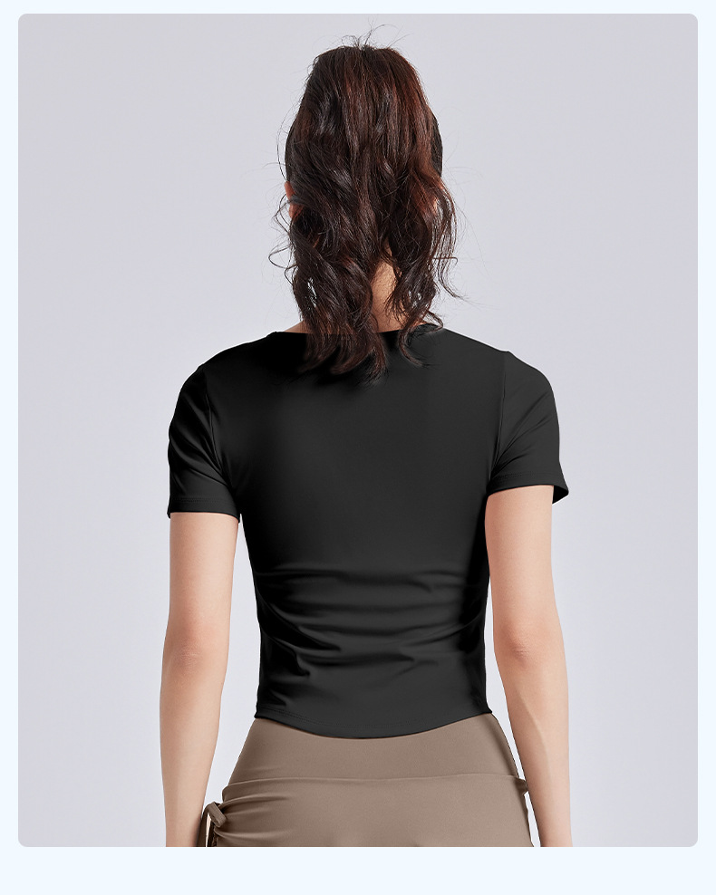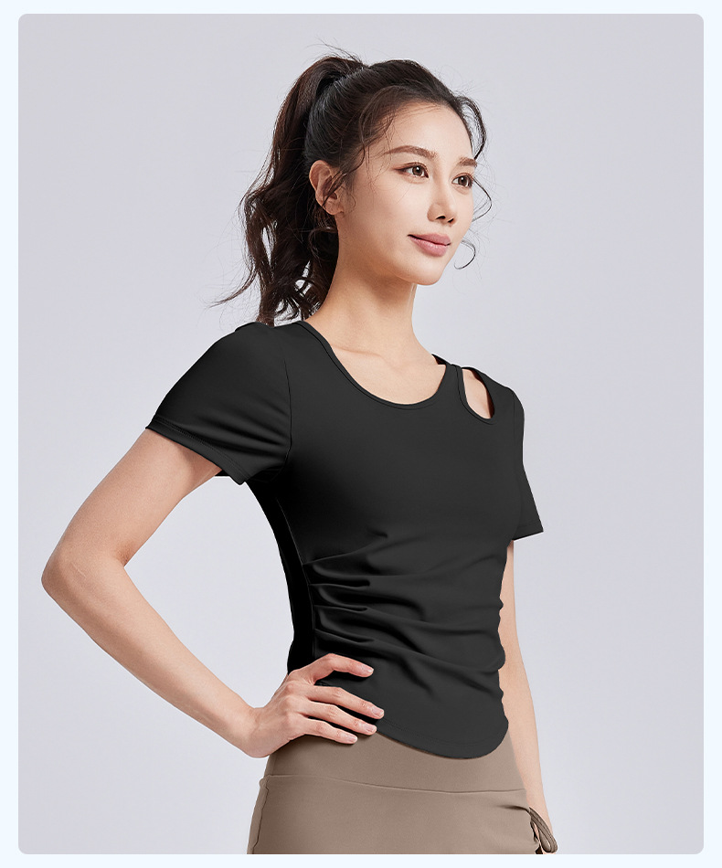 Juyitang, обтягивающая морщинистая одежда для йоги для женщин, спортивные топы для фитнеса на одну чашку с нагрудными подушечками, летние с короткими рукавами