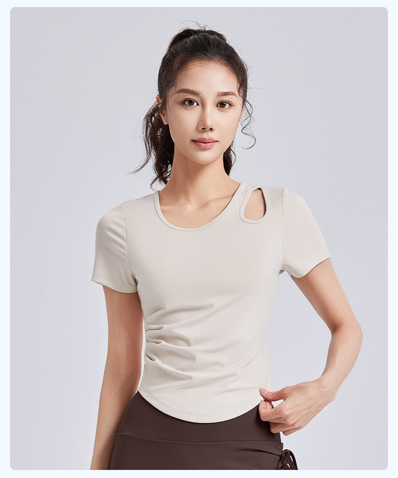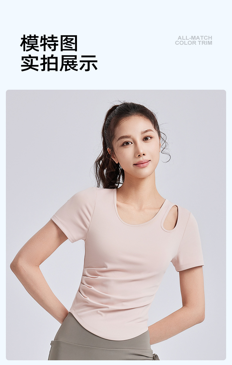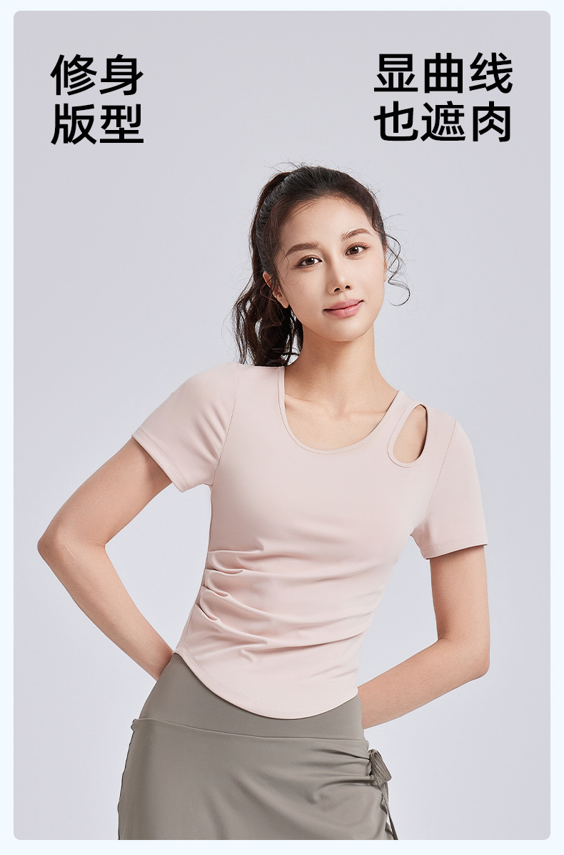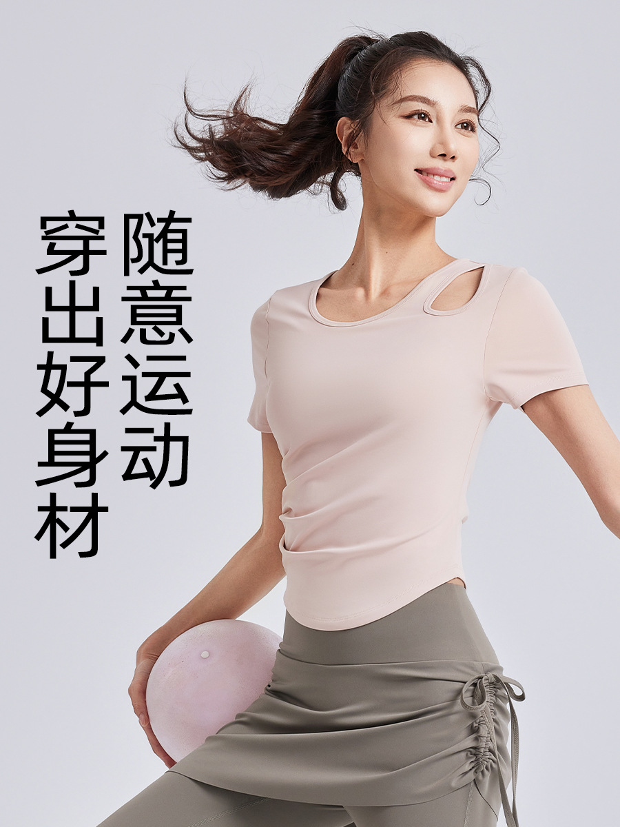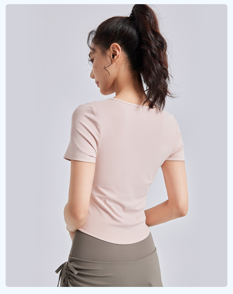 Juyitang, обтягивающая морщинистая одежда для йоги для женщин, спортивные топы для фитнеса на одну чашку с нагрудными подушечками, летние с короткими рукавами