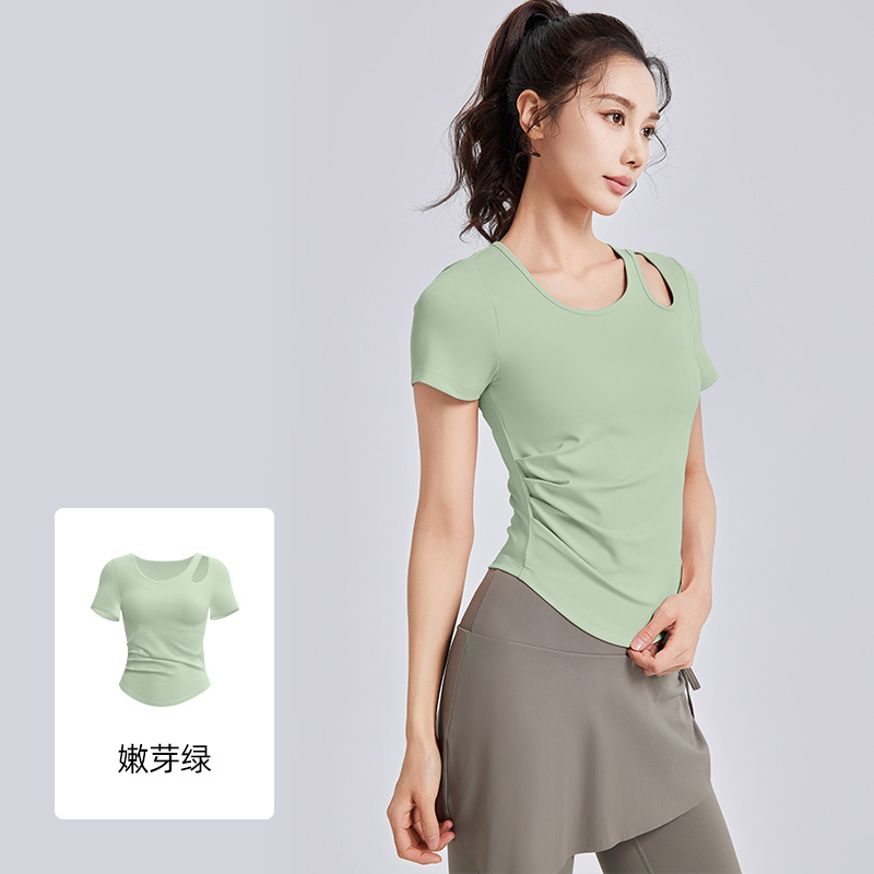 JuYitang весной новый полый сморщенный костюм для йоги с короткими рукавами женский бюстгальтер тонкий фитнес-топ