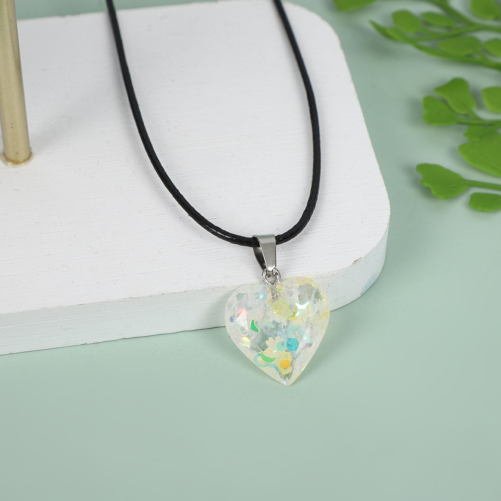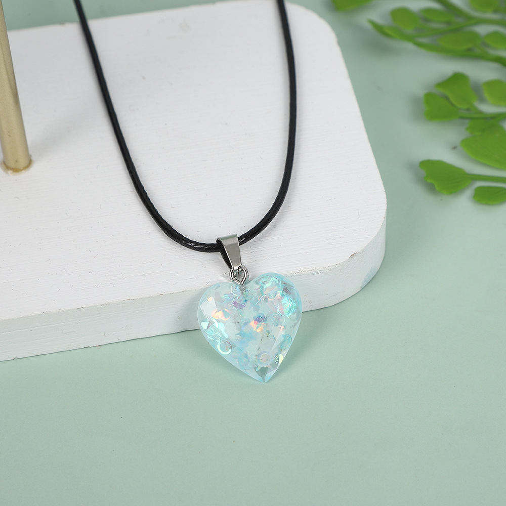 Подвеска в форме сердца из смолы, персонализированная многоцветная светящаяся подвеска, флуоресцентные блестки, персиковое сердце, ожерелье в форме сердца, производитель ювелирных изделий своими руками