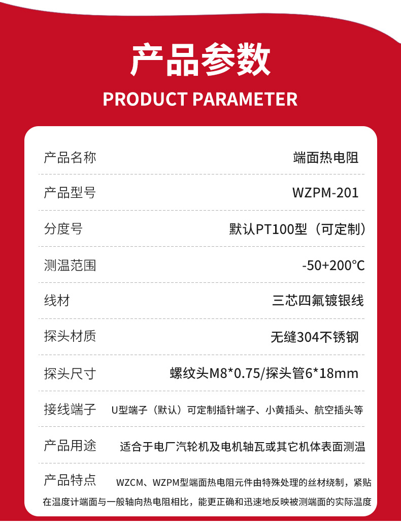 Тепловой сопротивльный зонд для измерения температуры подшипника WZPM-201 с резьбовым теплопротивлением, датчик температуры подшипника pt100