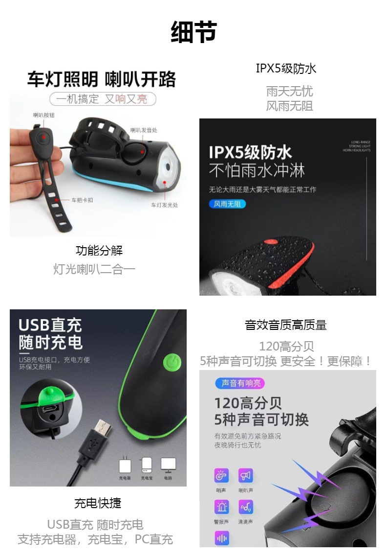 7588 велосипедный ночной светильник для езды на велосипеде, фара для дорожного велосипедиста, фонарик для детей, зарядный сигнал для велосипеда, водонепроницаемый горный велосипед