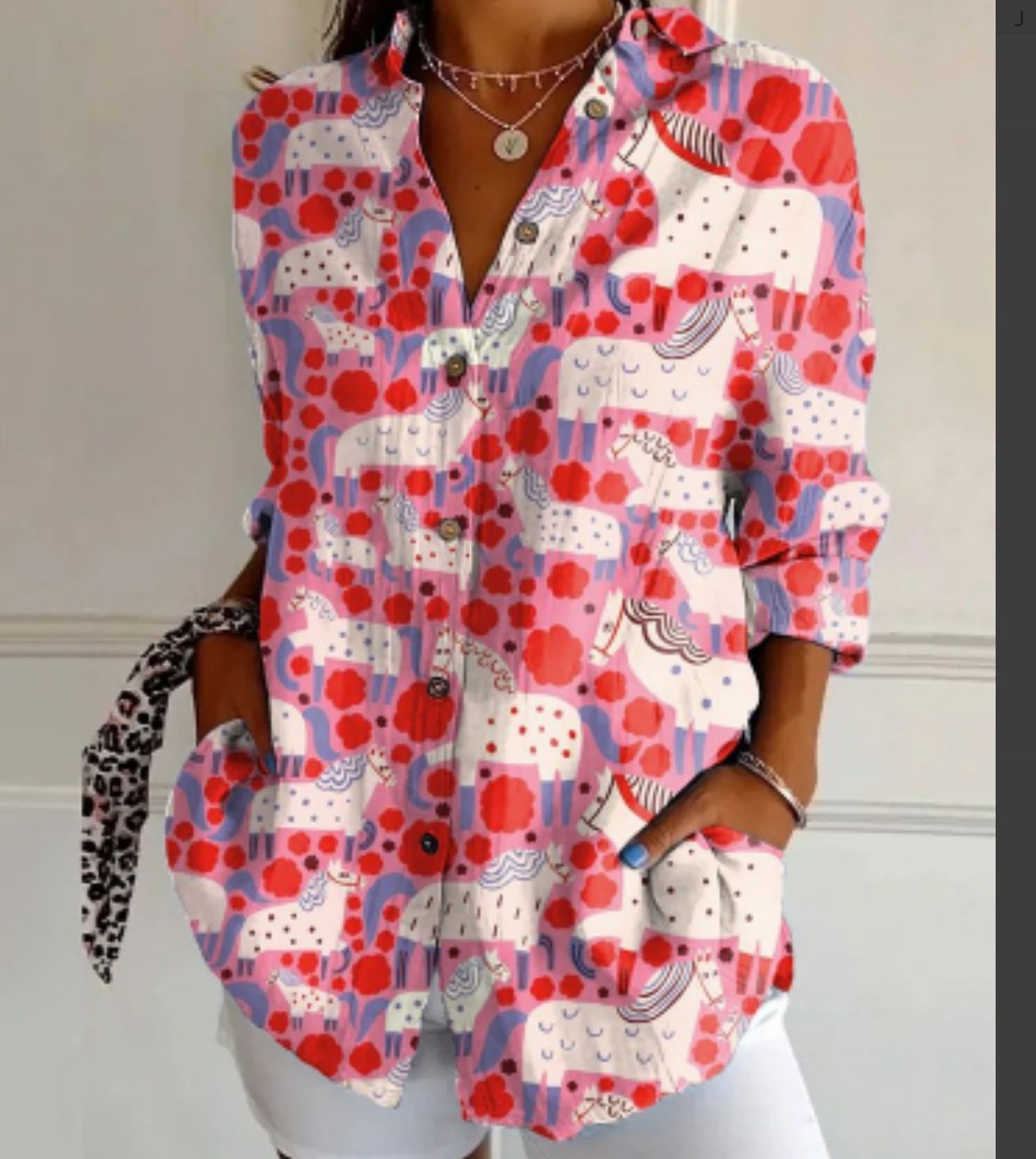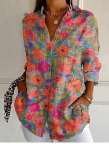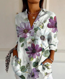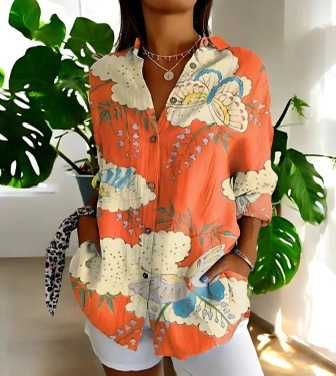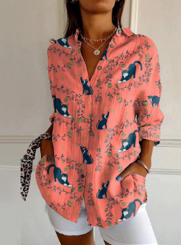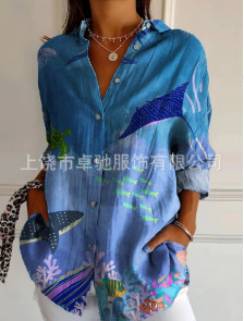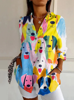 2025 новый стиль женская длинная рубашка женская летняя европейская и американская тенденция рубашка с длинными рукавами с принтом с принтом 3D рубашка