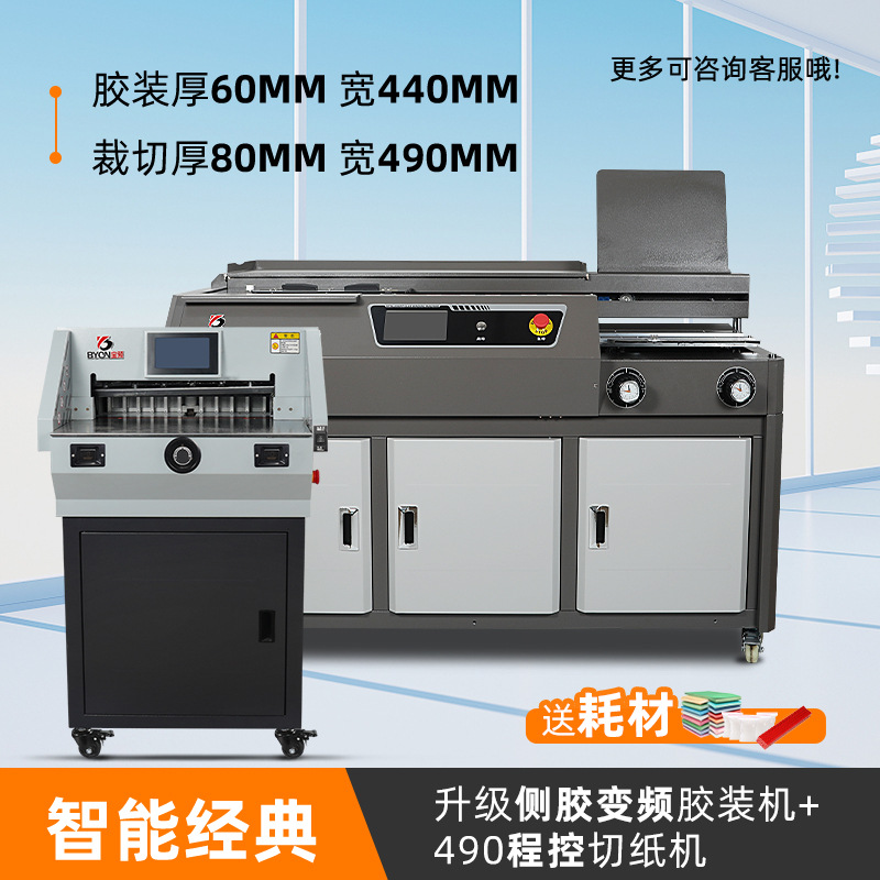 Автономная машина для переплета клеем формата А3; Машина для переплета клея А3 + резак для бумаги с программным управлением 450; Машина для переплета клея А3 + резак для бумаги с программным управлением 460; Машина для переплета клея А3 + резак для бумаги с программным управлением 490; Машина для переплета клея А3 + гидравлический резак для бумаги 490