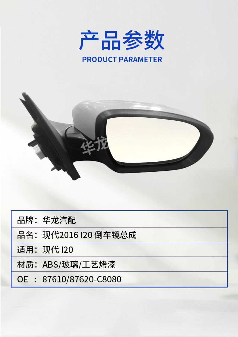 Производитель поставляет 87610/87620-C8080, подходящий для зеркала заднего вида Hyundai i20 2016 года.