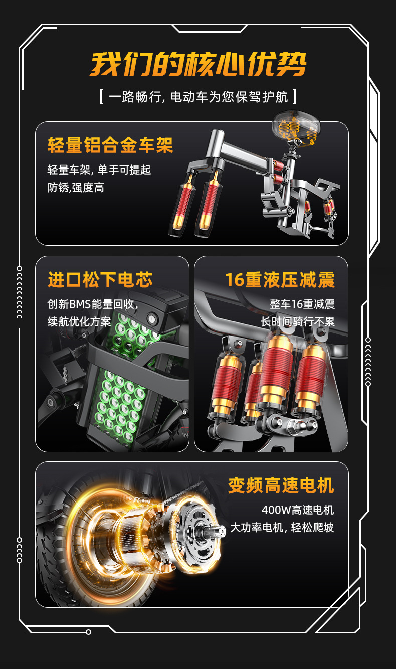 Складной 48V электромобиль с литиевой батареей из углеродного сплава кузов на 100 км