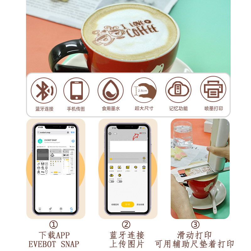EVEBOT миллиард ватт printpen портативный пищевой принтер кофейный струйный принтер для гурманов струйный принтер для гурманов