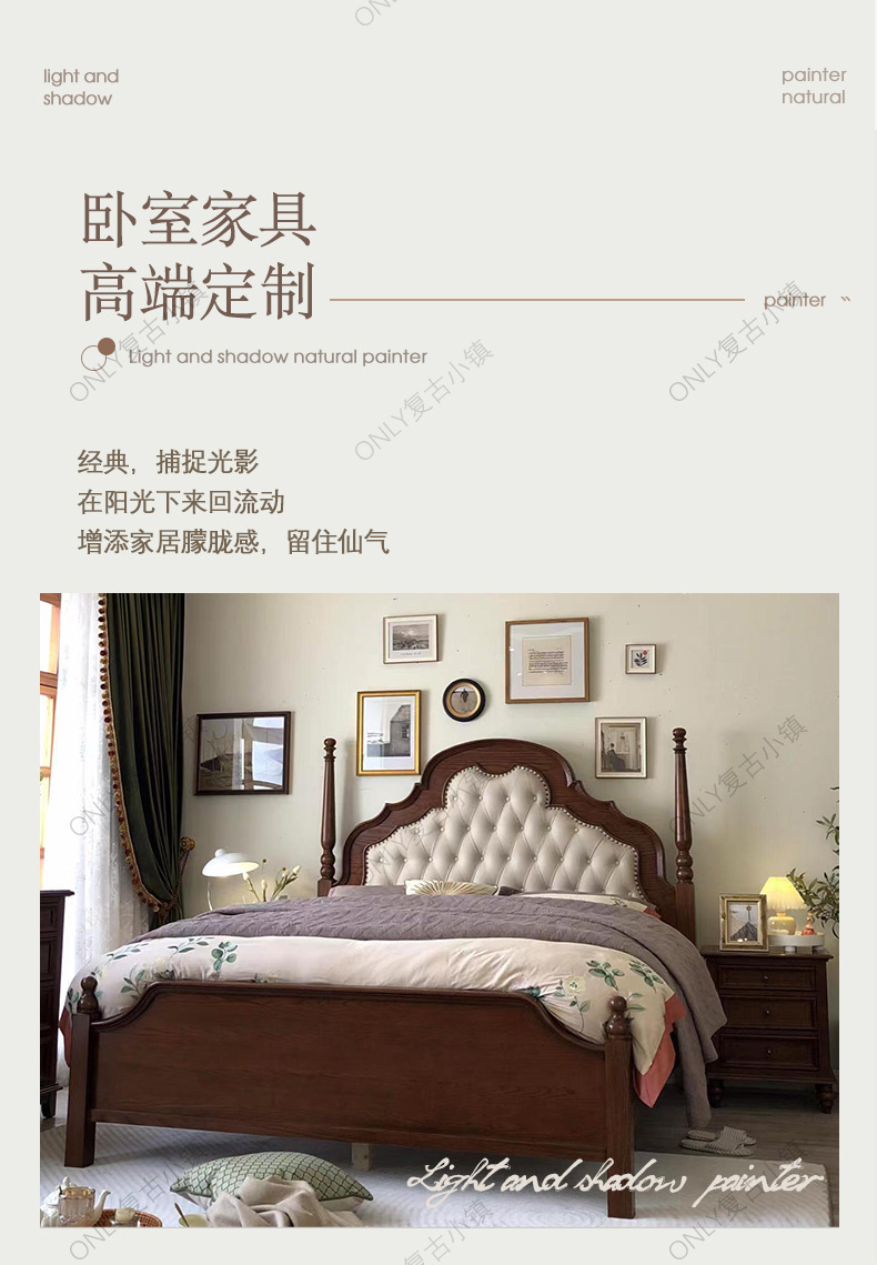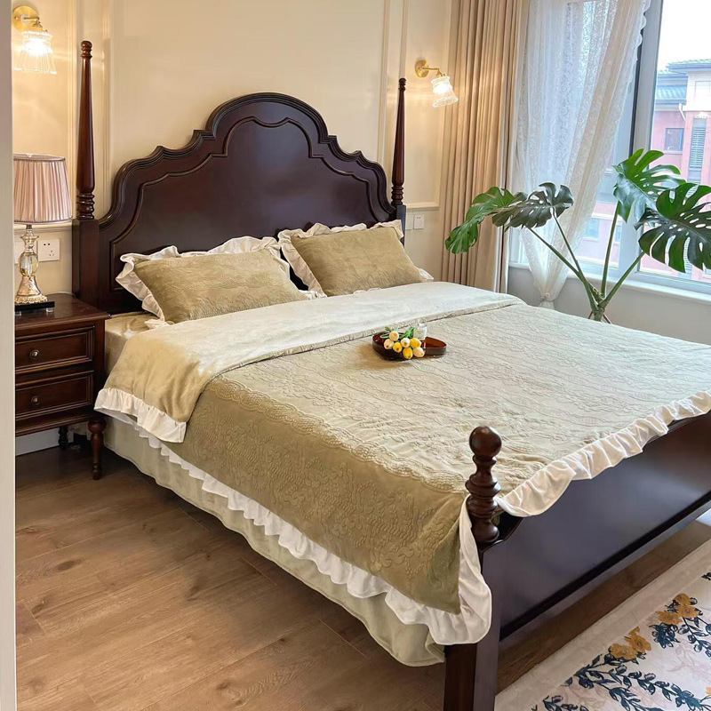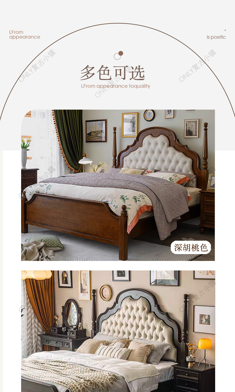 Американская ретро кровать из массива дерева, кровать французской принцессы, прикроватная тумба, комод, шкаф, спальный гарнитур, комплект элитной мебели