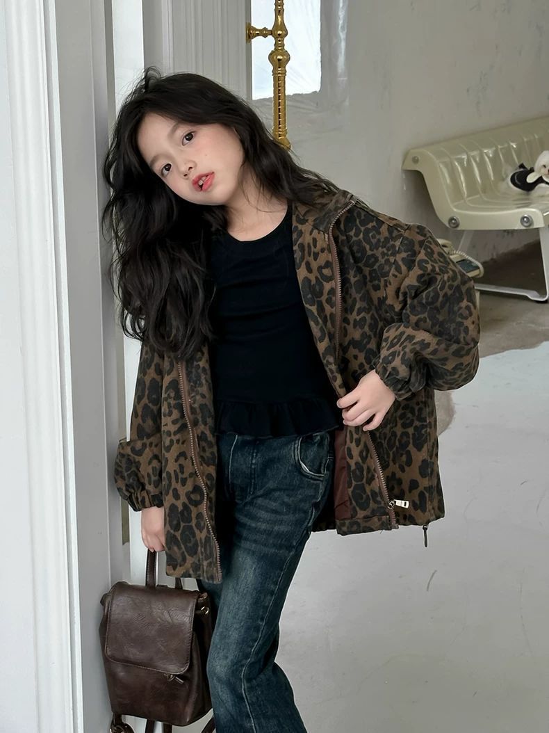 Áo khoác trem детская верхняя одежда осенне-зимняя верхняя одежда с леопардовым принтом на молнии