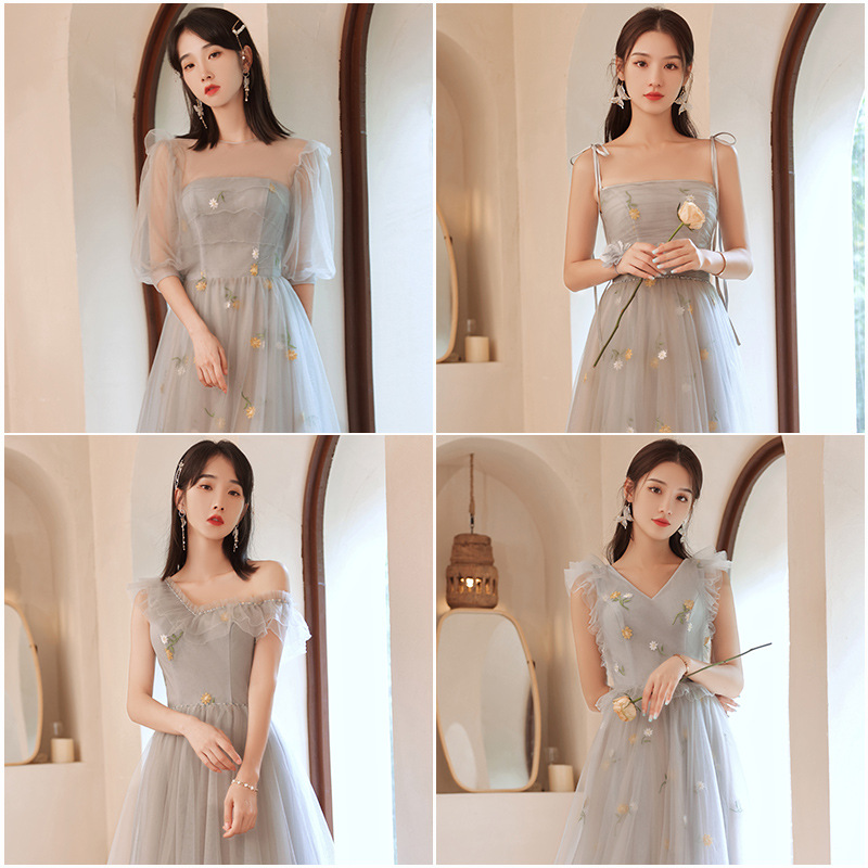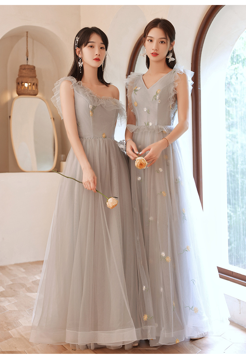 Креативное платье для подружек невесты 2025, новое летнее элегантное серое платье для сестер, длинное платье для подружек невесты, стройнящий силуэт.