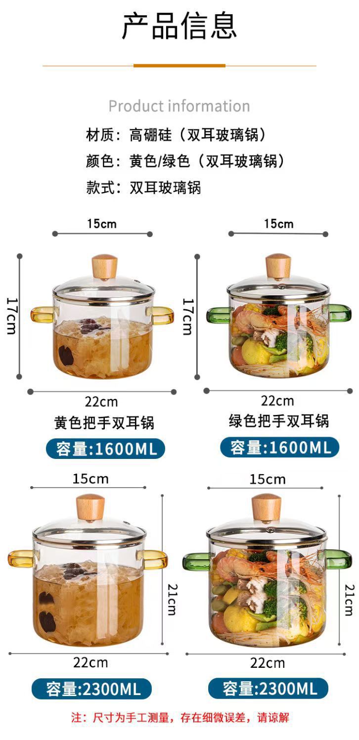 高硼硅泡面锅带盖双耳汤锅电陶炉可加热透明炖盅透明煮粥锅玻璃锅