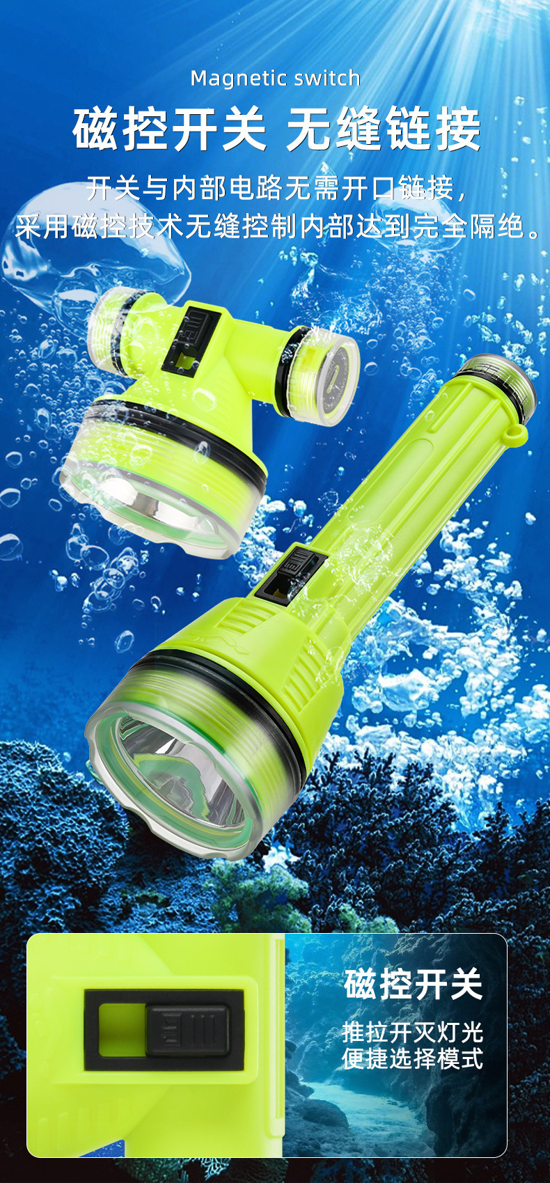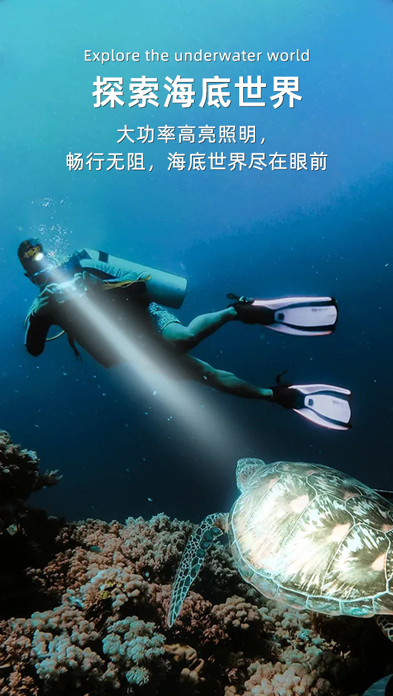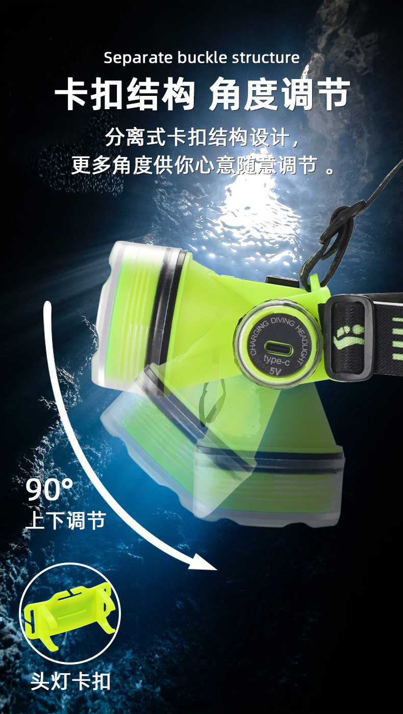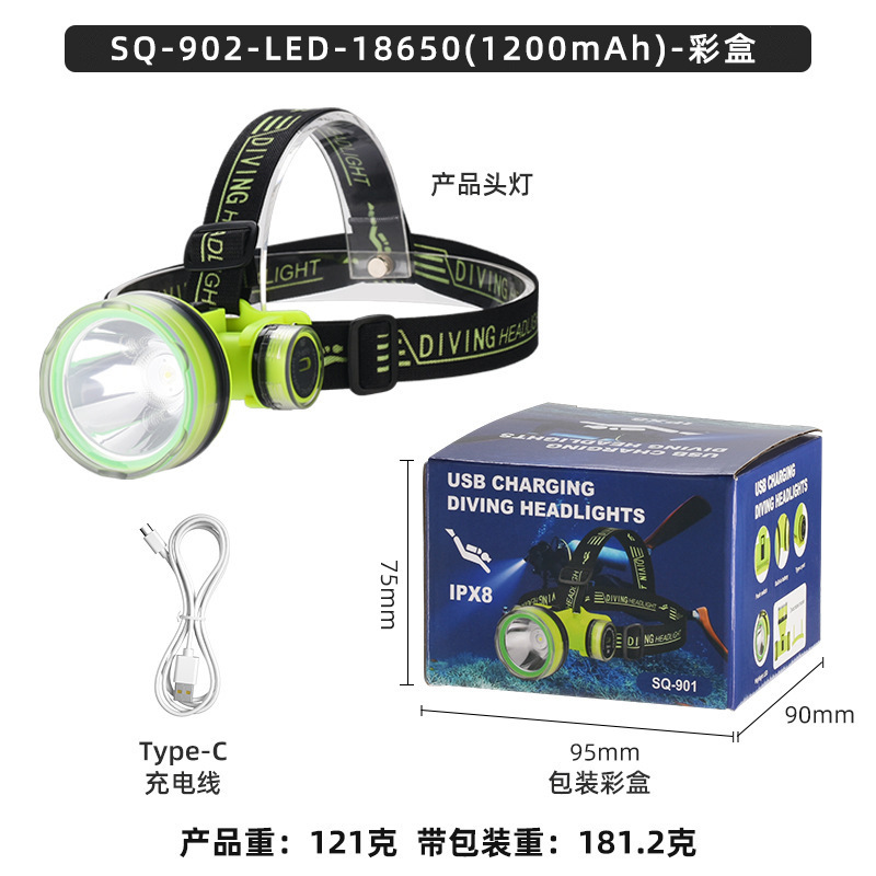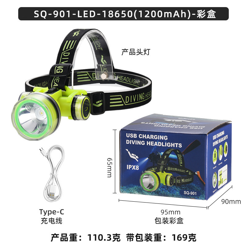 Трансграничный новый светодиодный погружение сильный свет супер яркий водонепроницаемый usb зарядка дальнего излучения дальнего действия глубокого погружения спасательный рыболовный фары