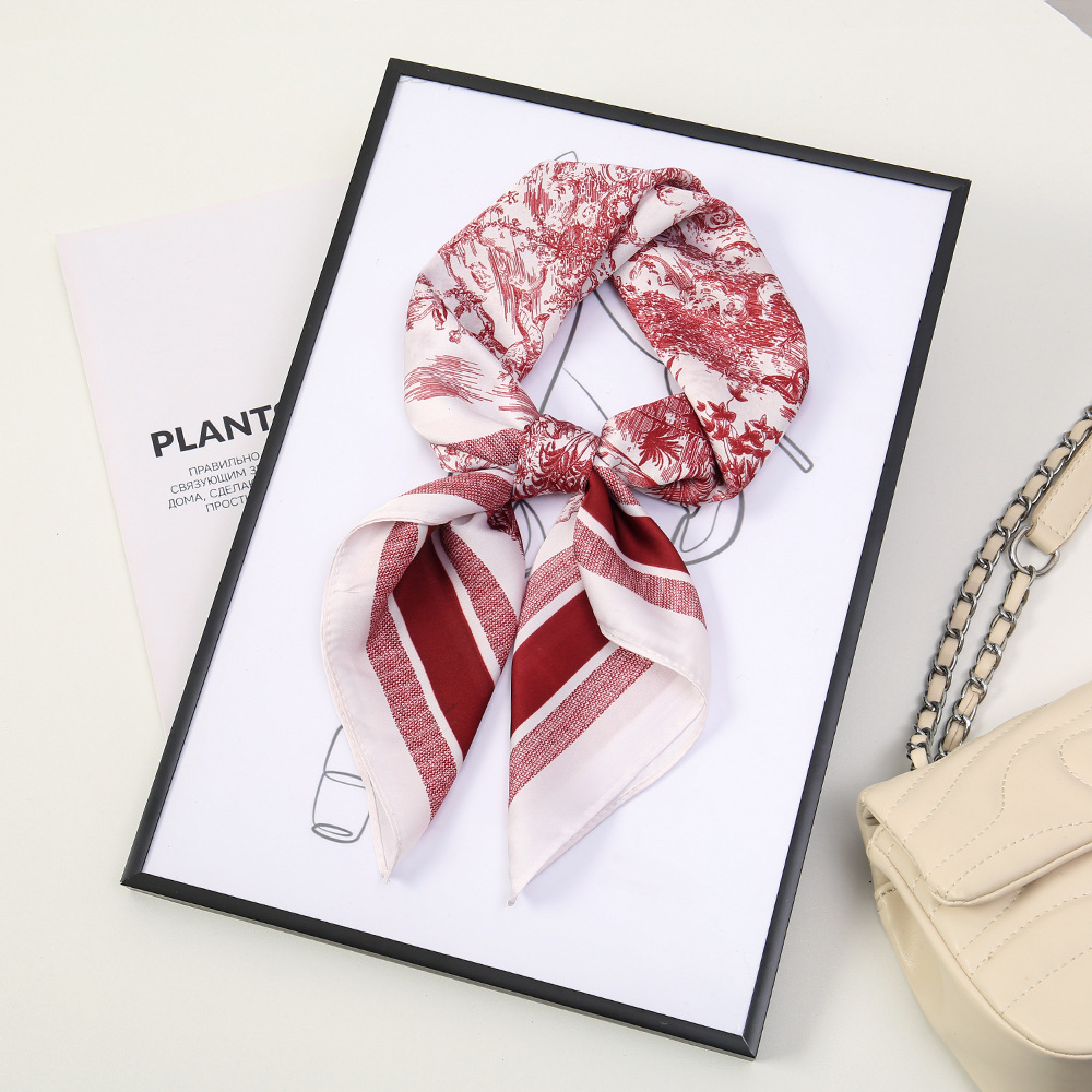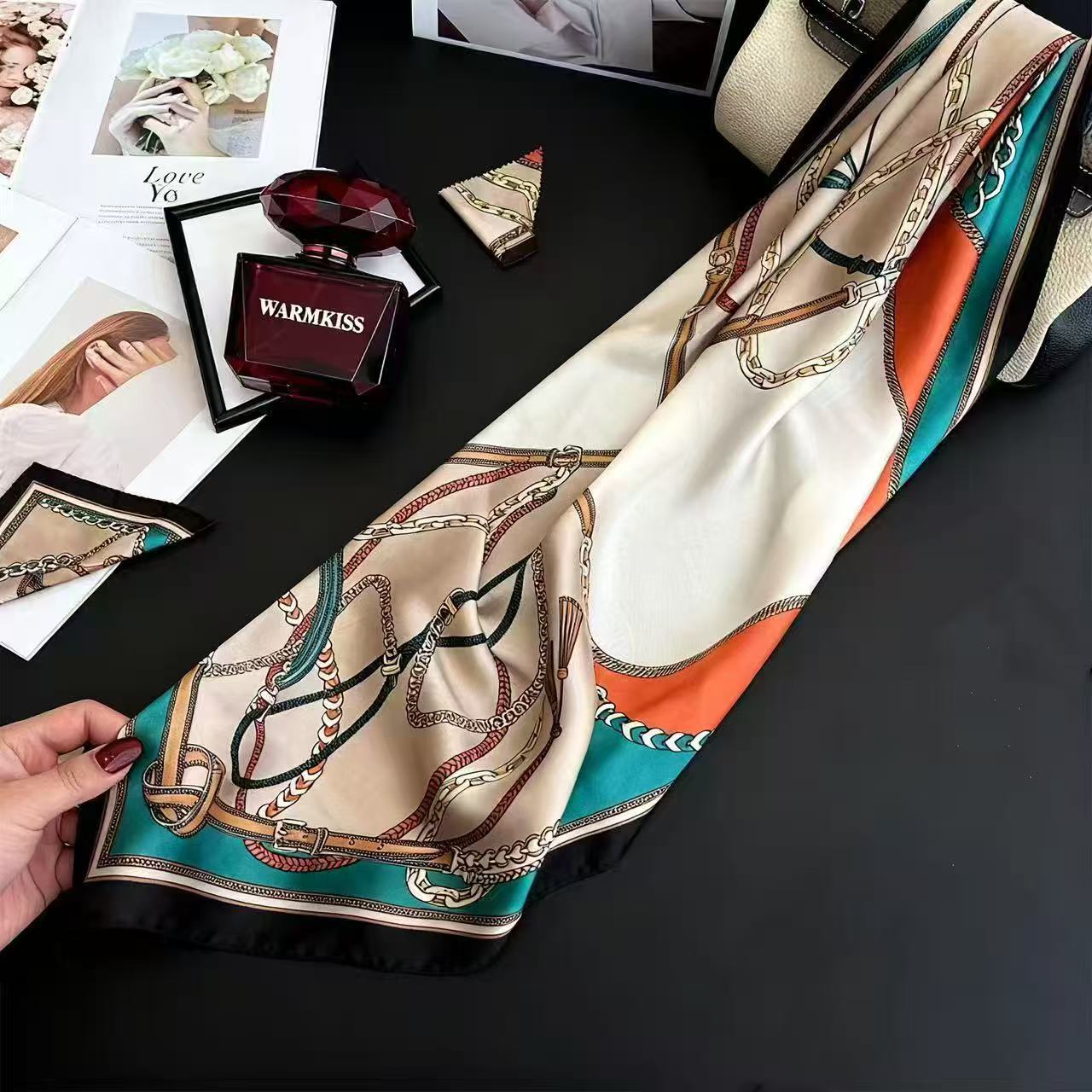 70 шелковых шарфов Квадратные шарфы высокого уровня Корейская мода дикая профессиональная имитация шелка маленький шарф ретро принт шелковый шарф женский
