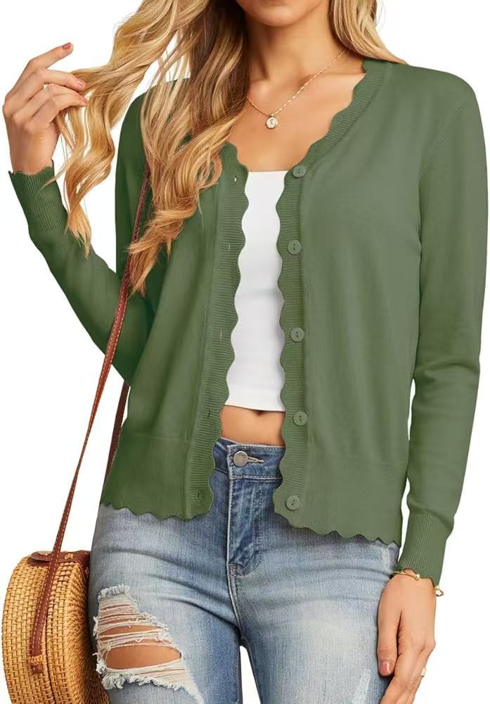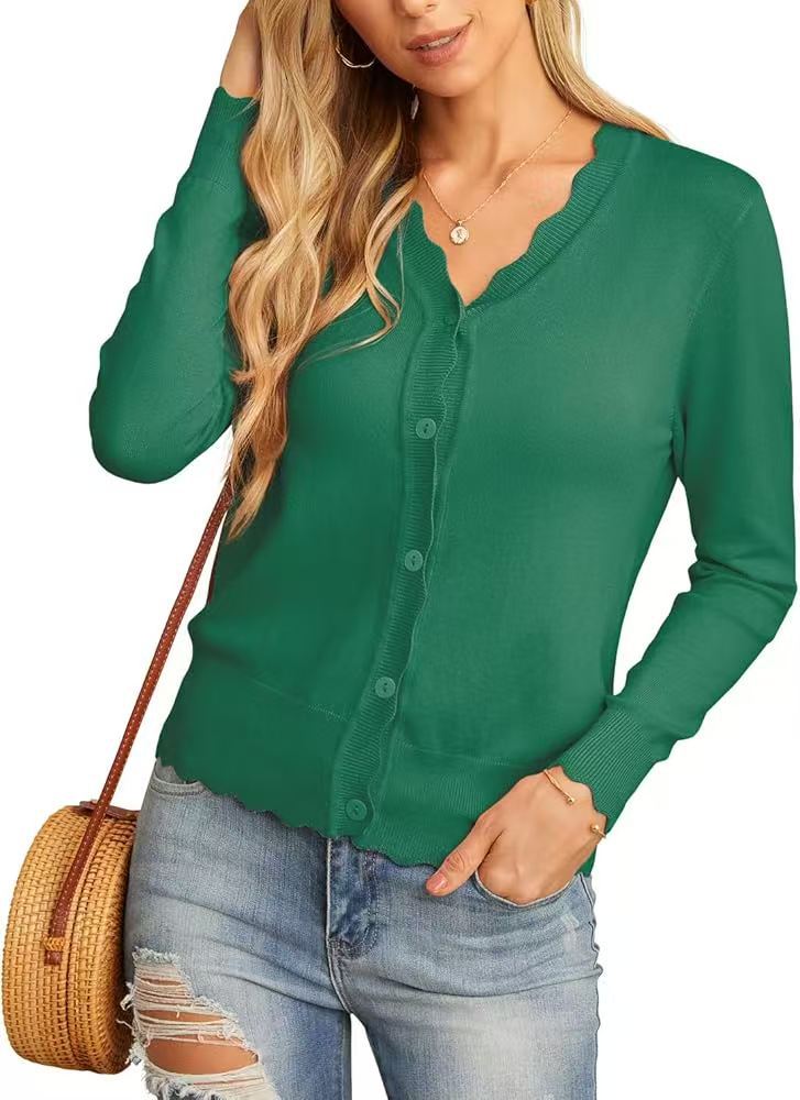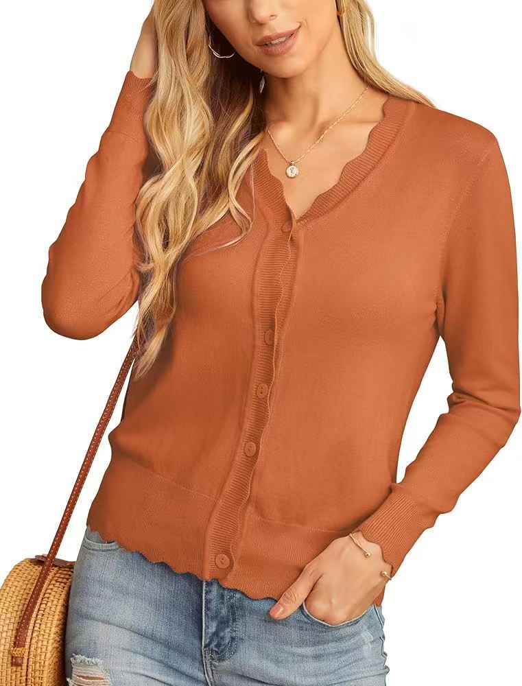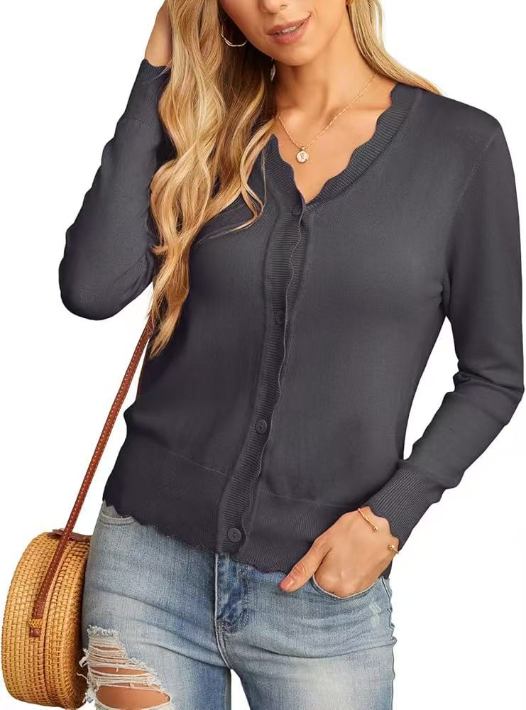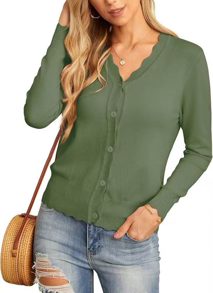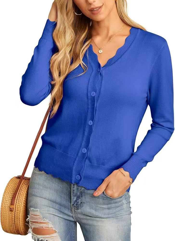 Новый модный тонкий трикотажный кардиган с рюшами и рукавом три четверти для весны/лета, топ Amazon V9 для трансграничной торговли