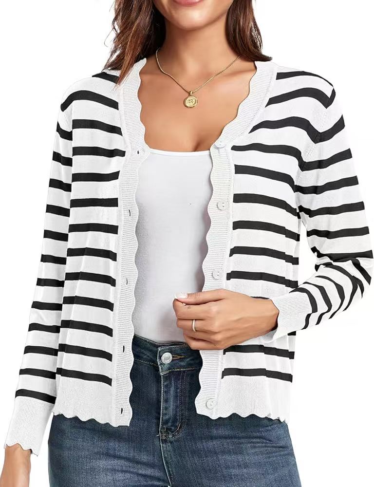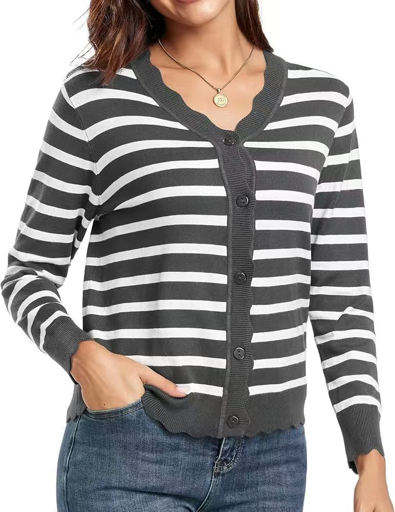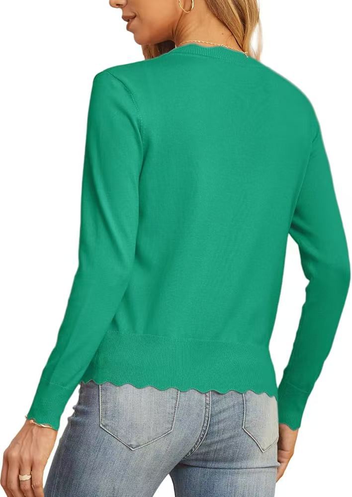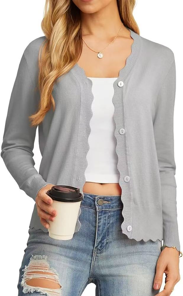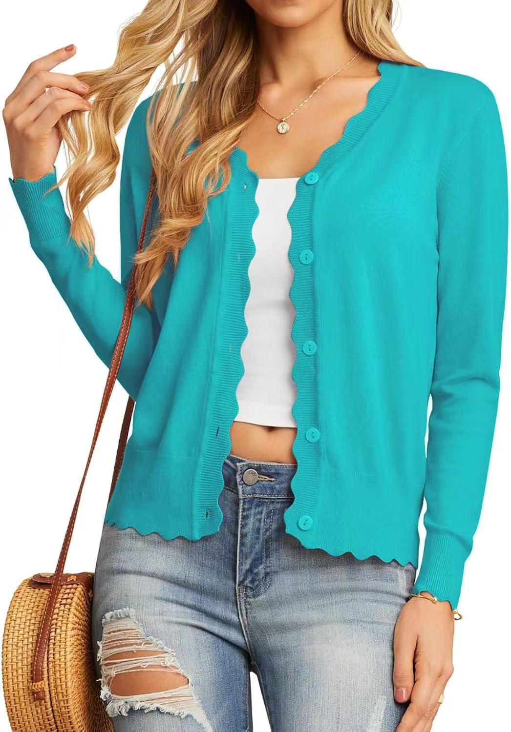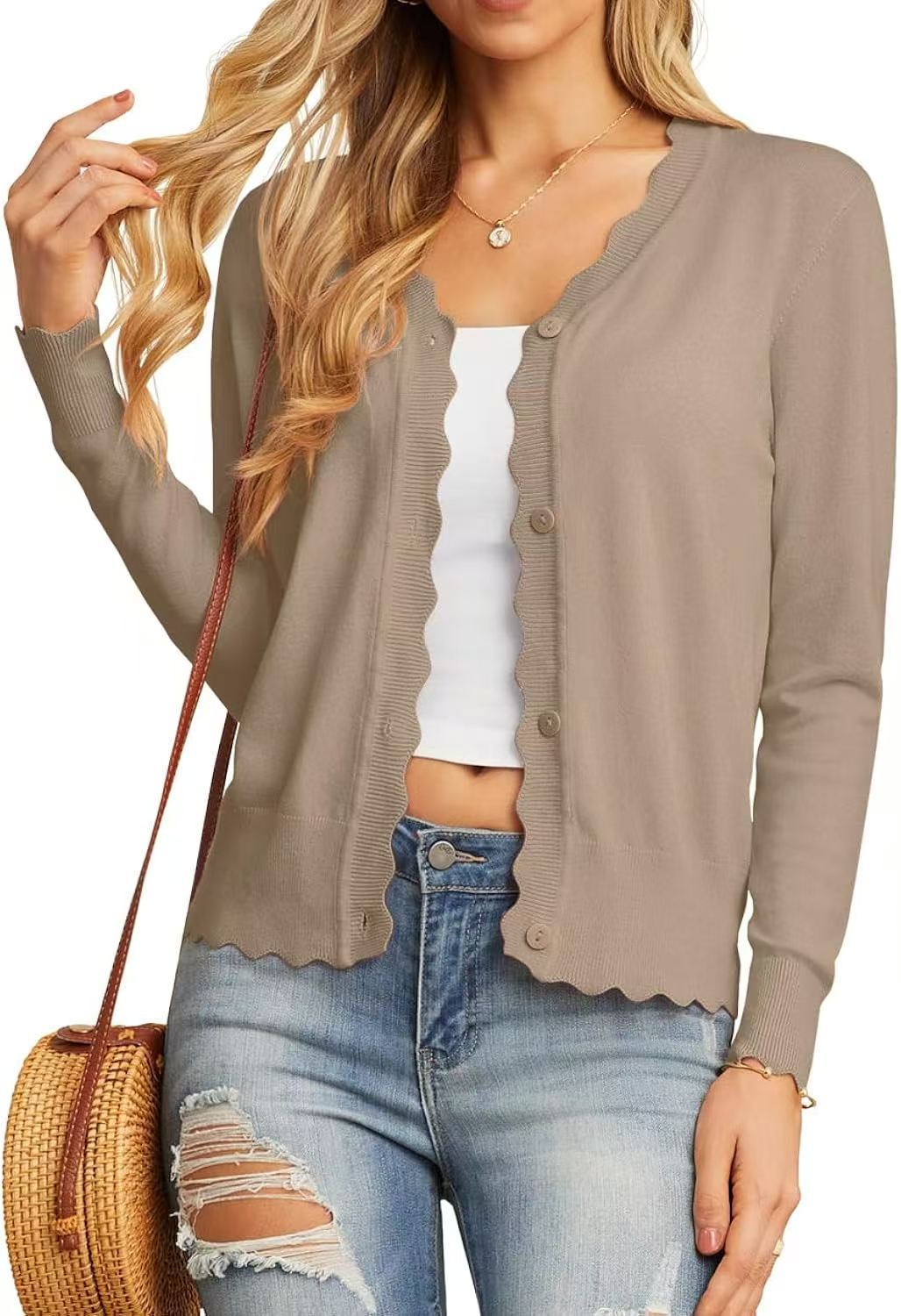 Новый модный тонкий трикотажный кардиган с рюшами и рукавом три четверти для весны/лета, топ Amazon V9 для трансграничной торговли