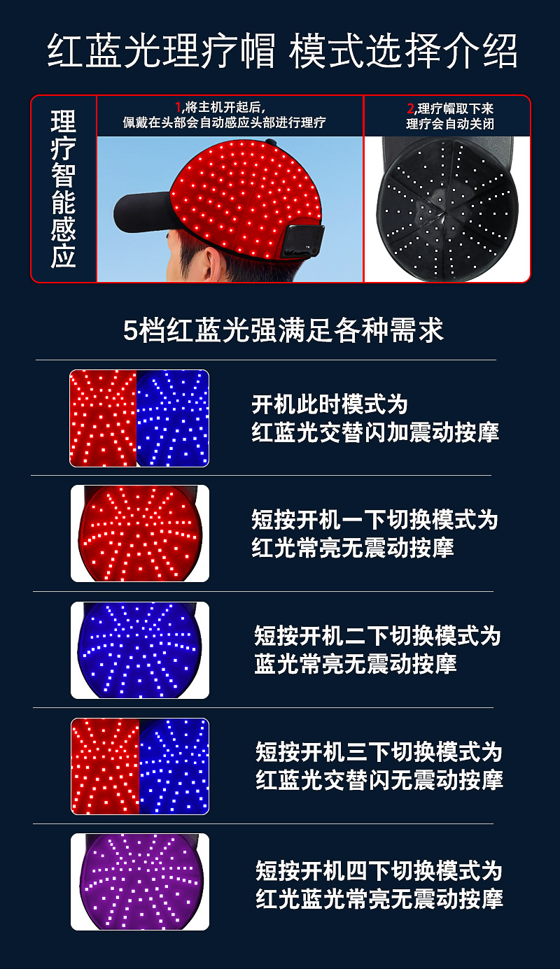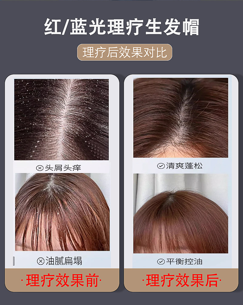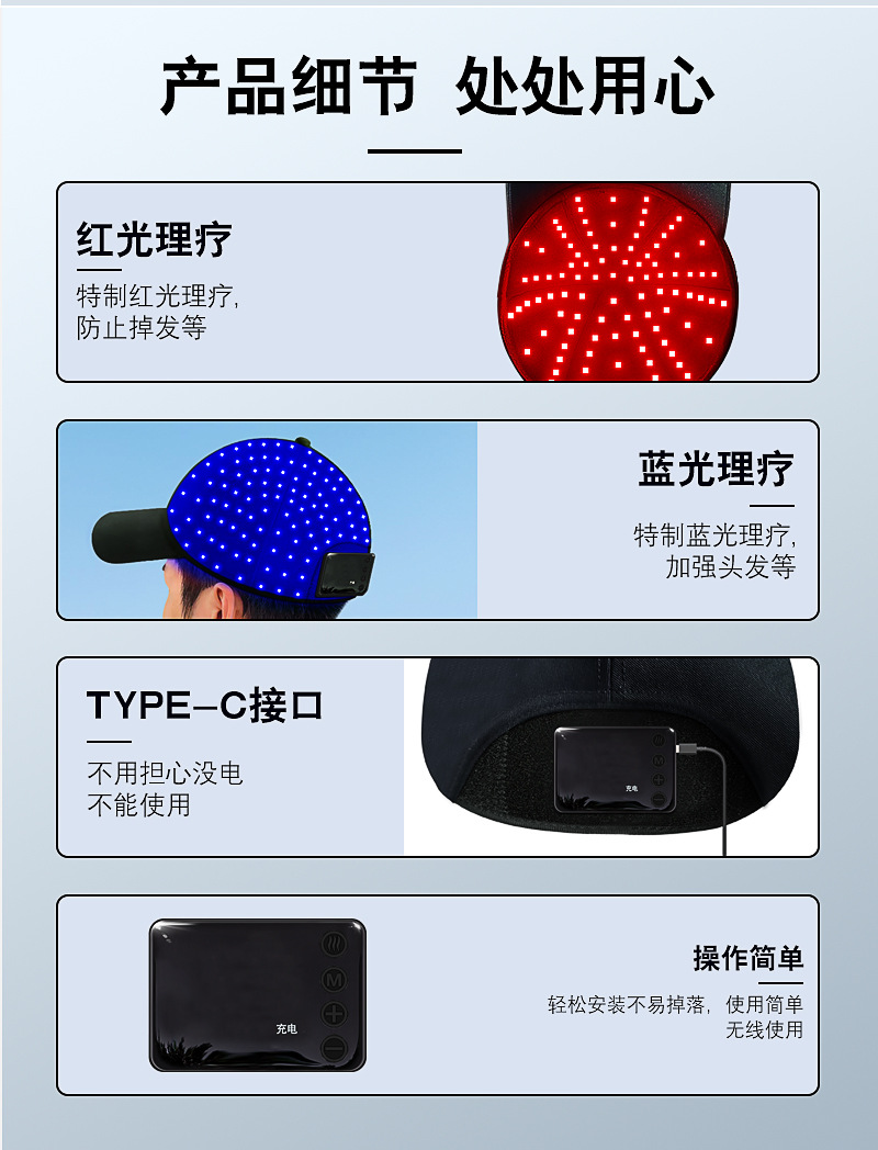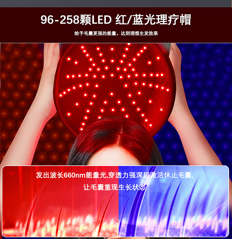 Портативная перезаряжаемая шапочка с красным светом, шапочка с синим светом, шапочка для роста волос, прибор с световыми волнами, уход за волосяными фолликулами, предотвращение выпадения волос, удаление масла и рост волос