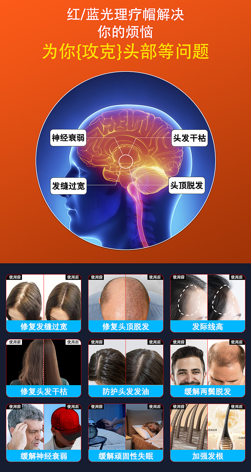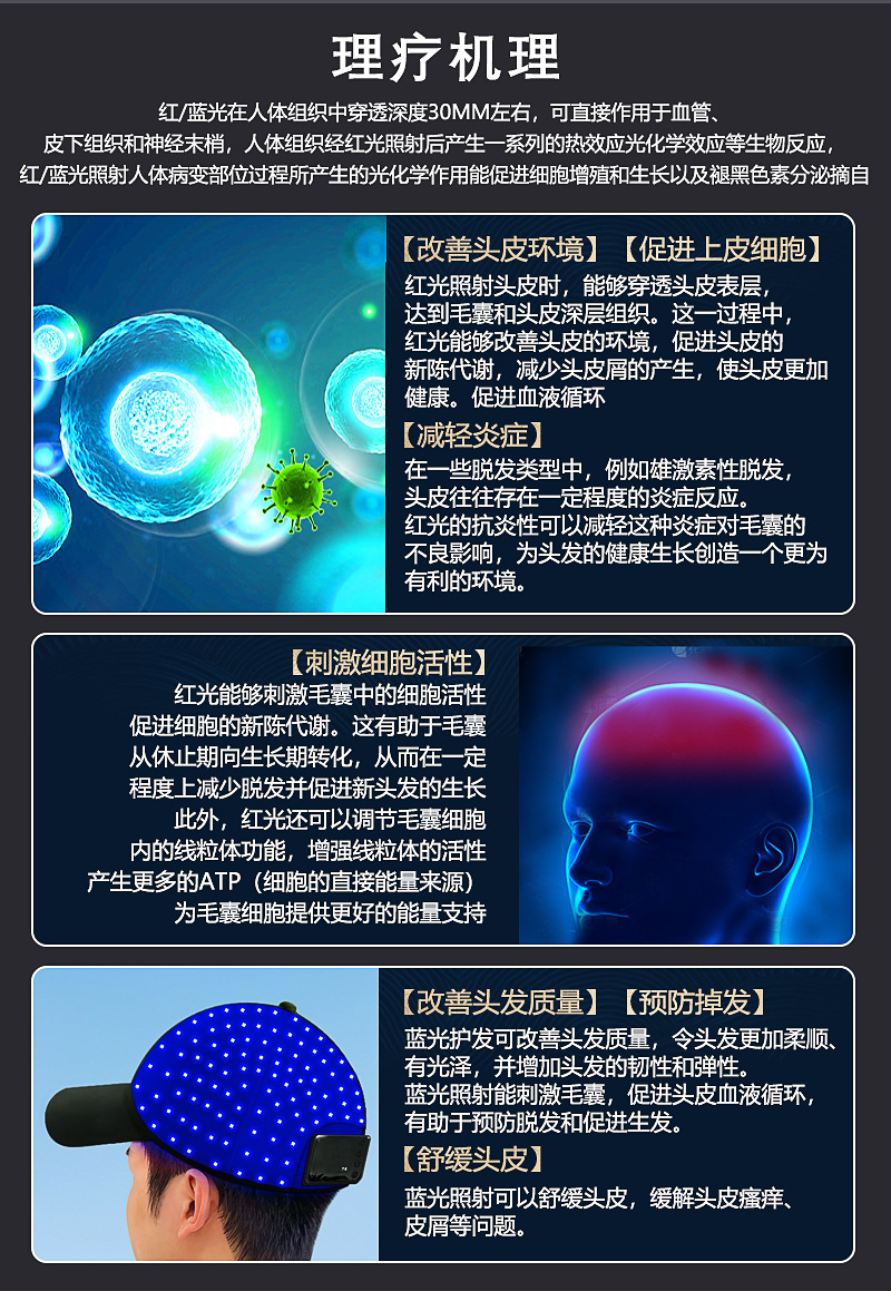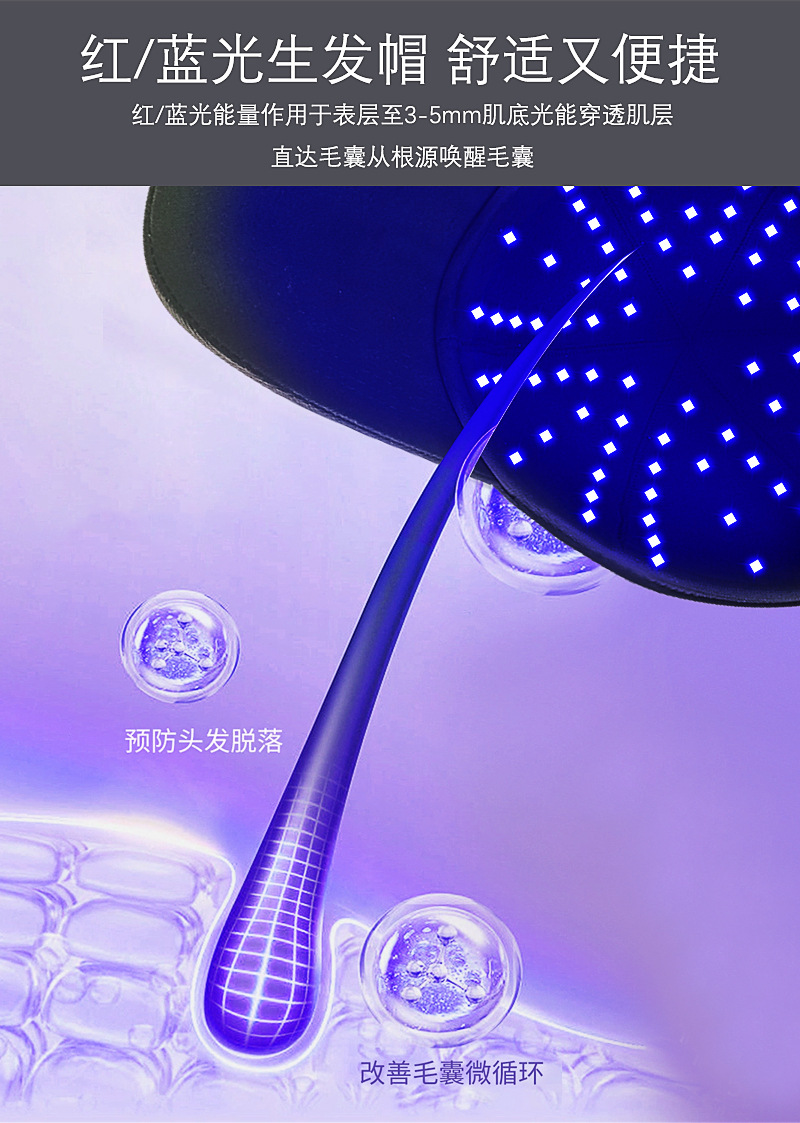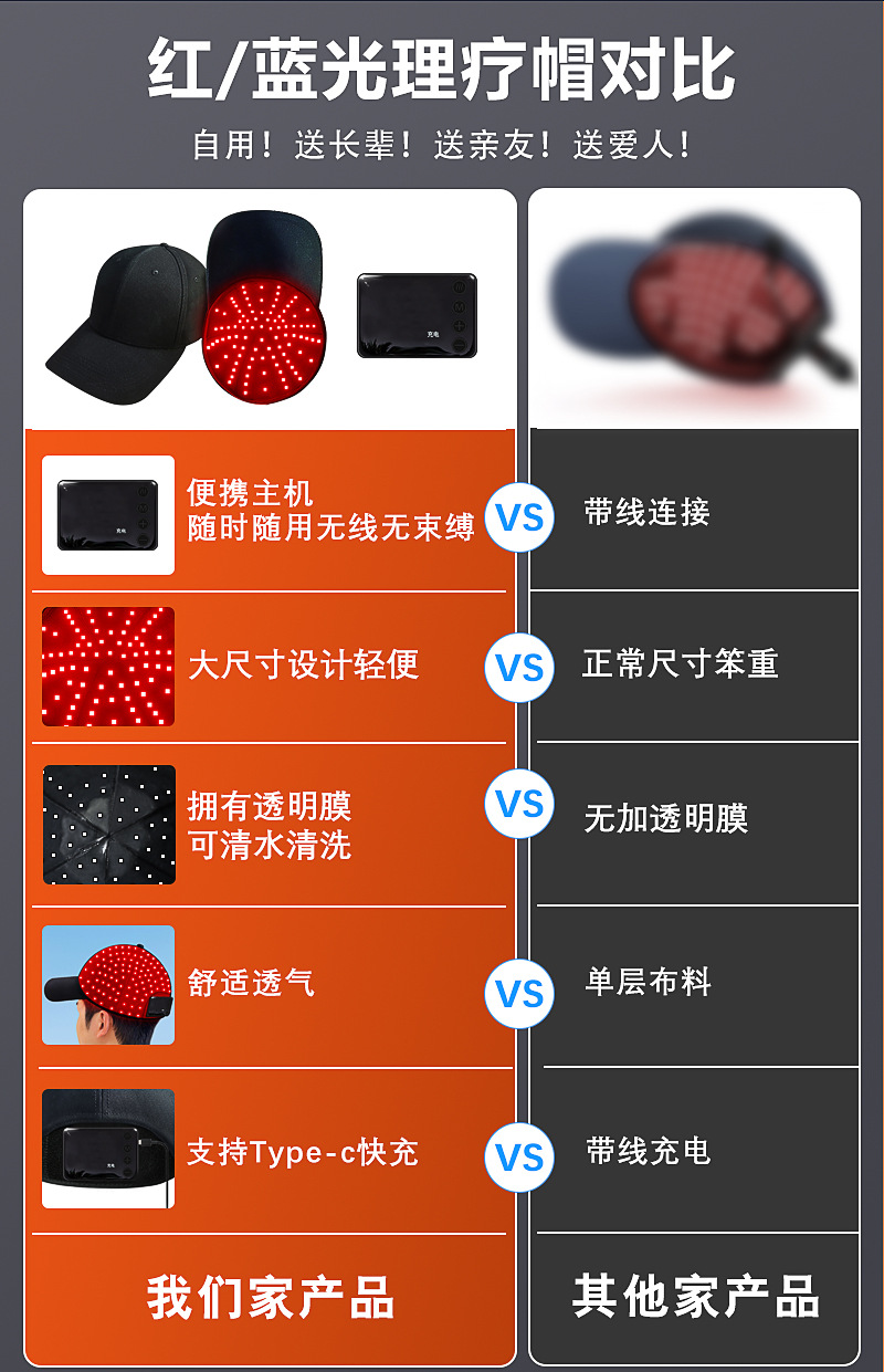 Портативная перезаряжаемая шапочка с красным светом, шапочка с синим светом, шапочка для роста волос, прибор с световыми волнами, уход за волосяными фолликулами, предотвращение выпадения волос, удаление масла и рост волос