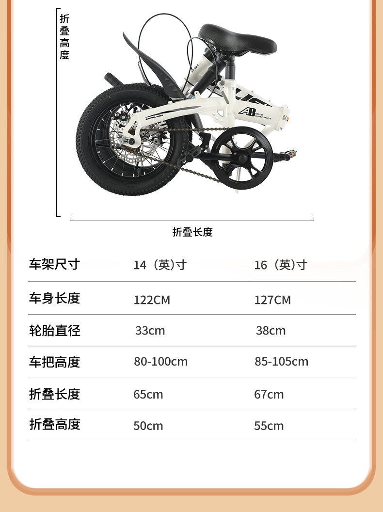 Складной велосипедный тормоз без установки мини-BMX 12/14/16 дюймов для взрослых учащихся начальной и средней школы