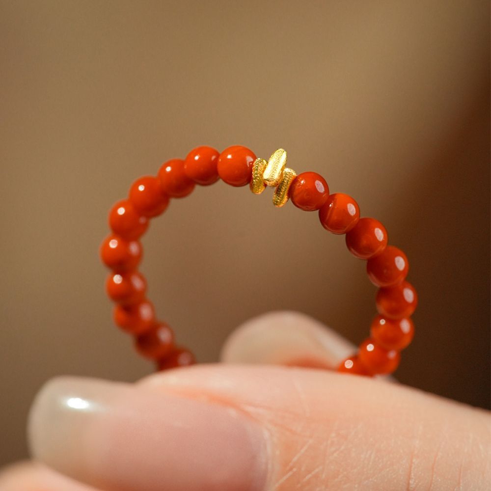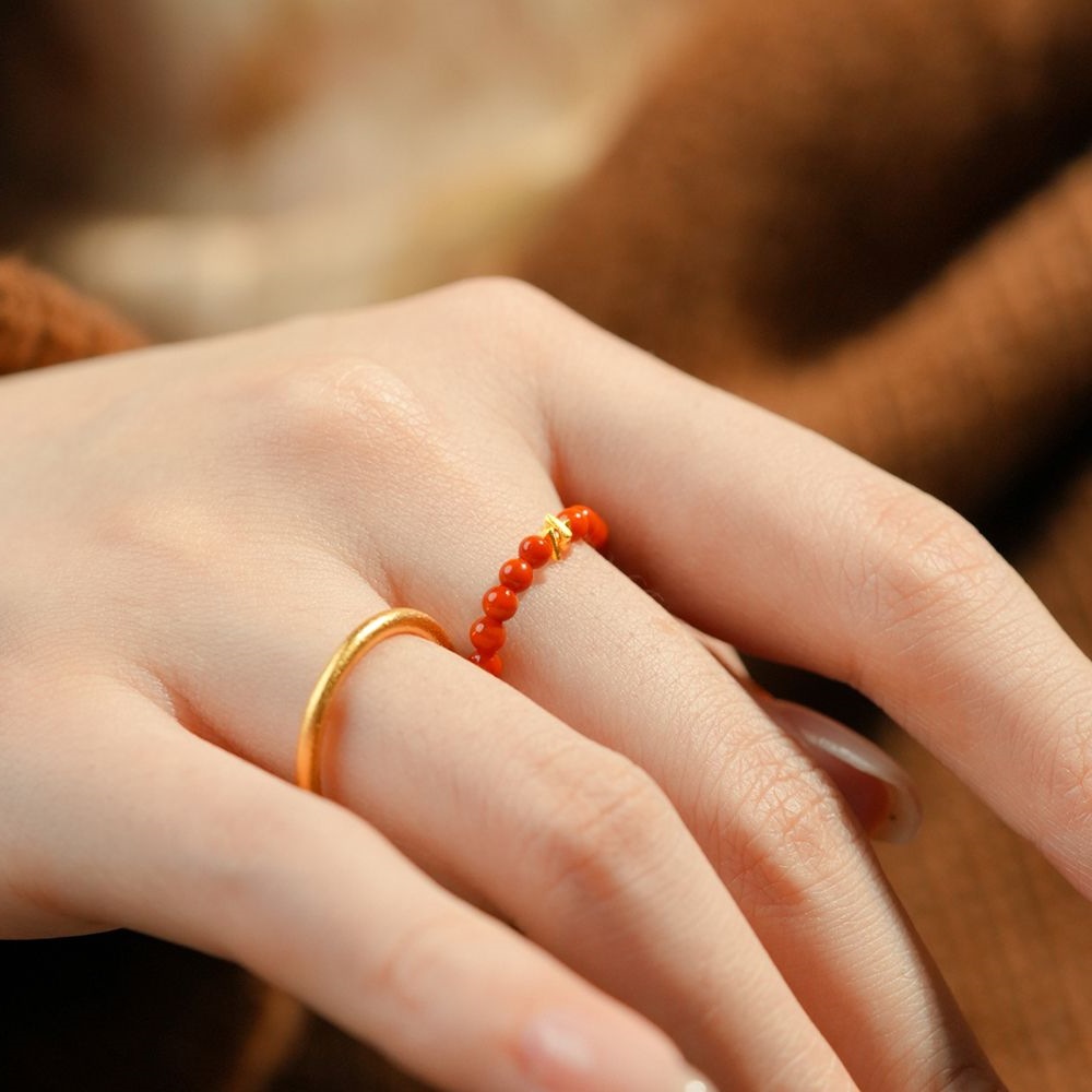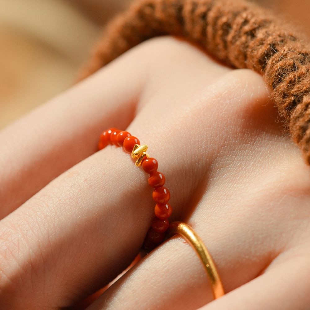 Кольцо "Shimmer" из южного красного агата с бисером, женское золото 18 карат, 2025 год Змеи, год животного, красный подарок