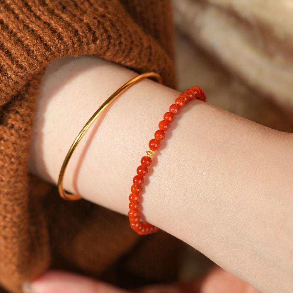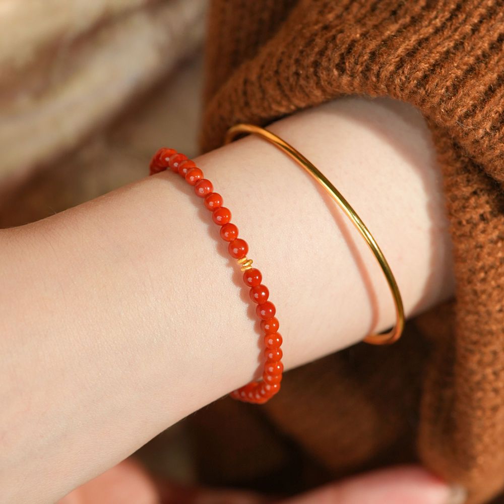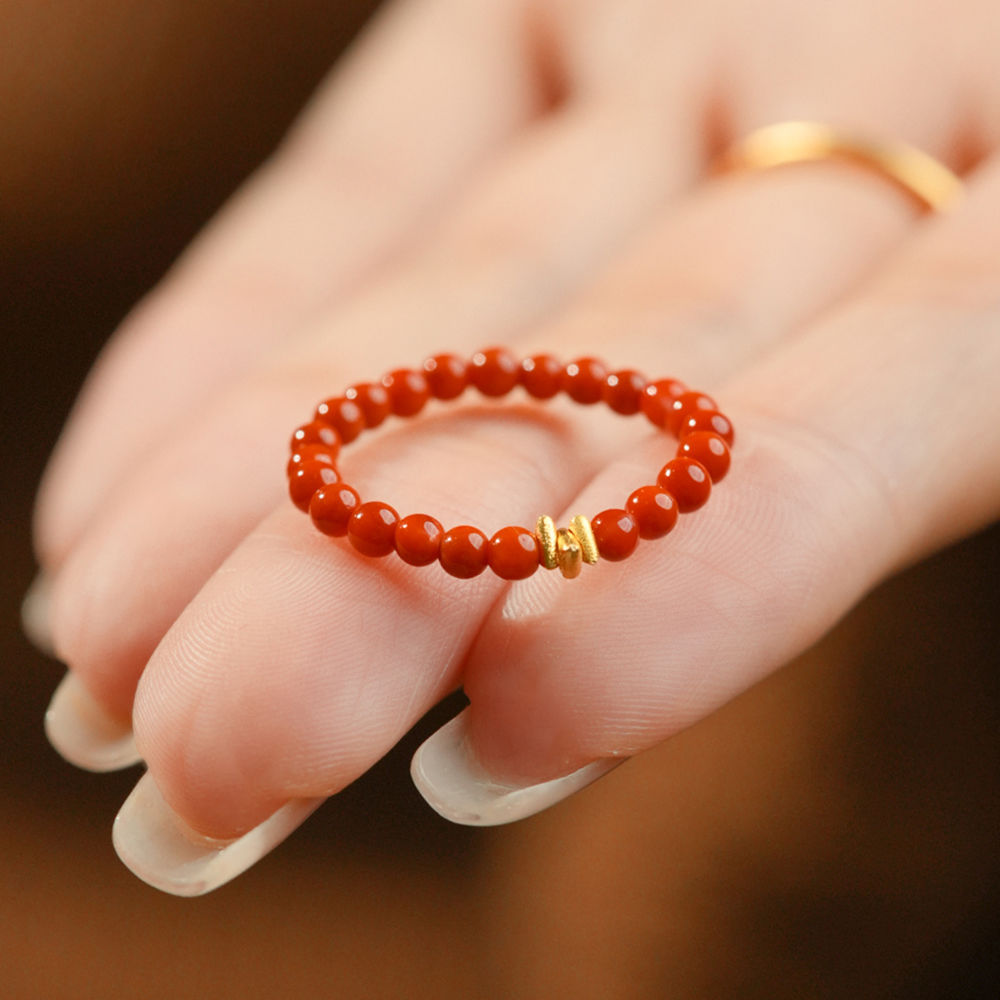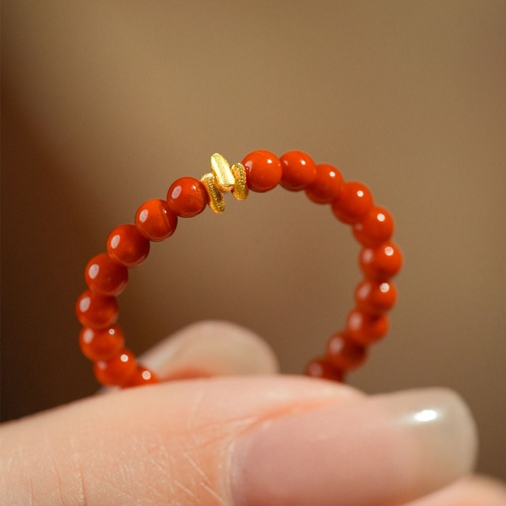 Кольцо "Shimmer" из южного красного агата с бисером, женское золото 18 карат, 2025 год Змеи, год животного, красный подарок