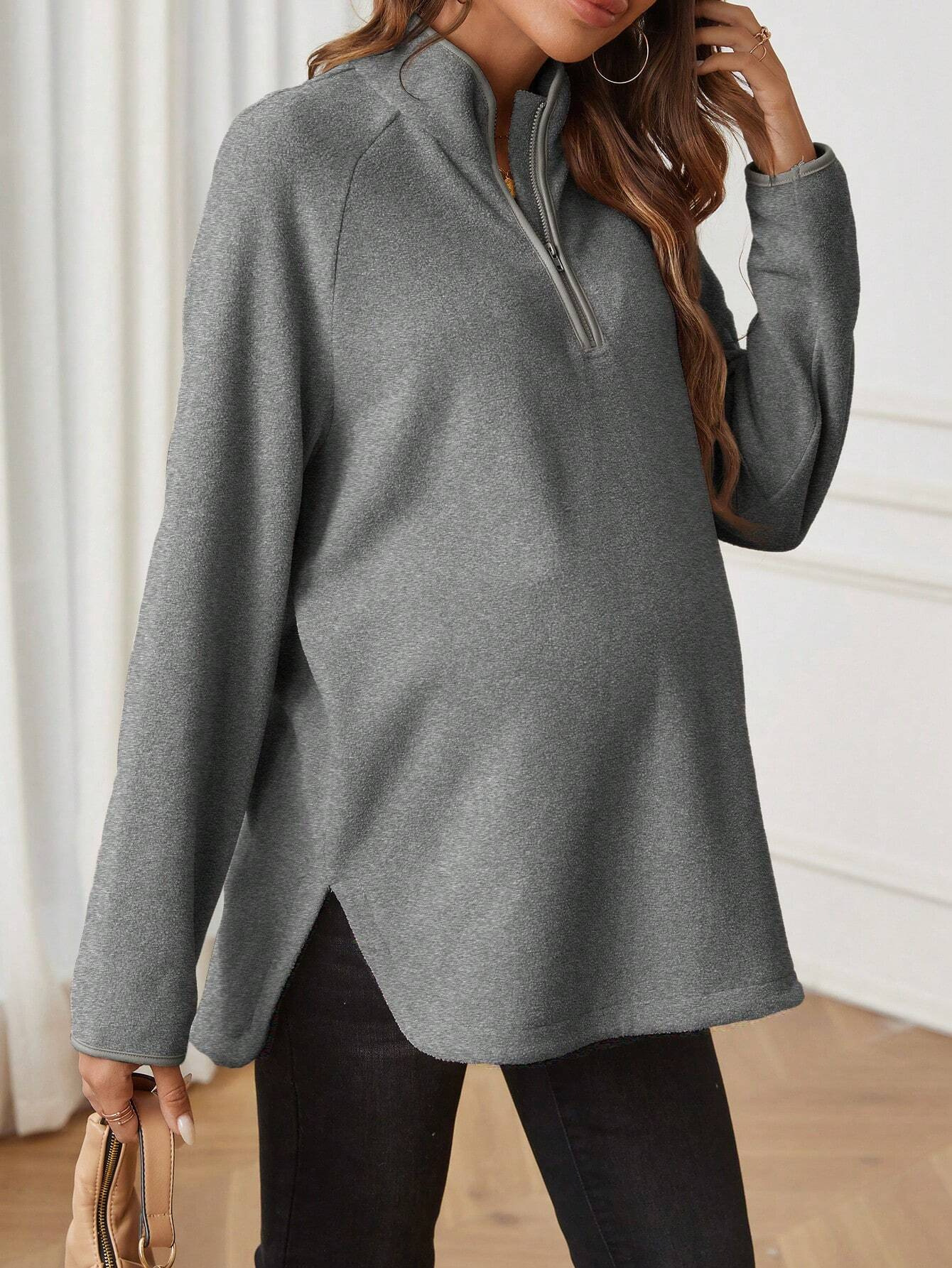 Европейская и американская Amazon, новая трансграничная горячая распродажа осенне-зимней модной женской однотонной свободной футболки на молнии с длинными рукавами для беременных
