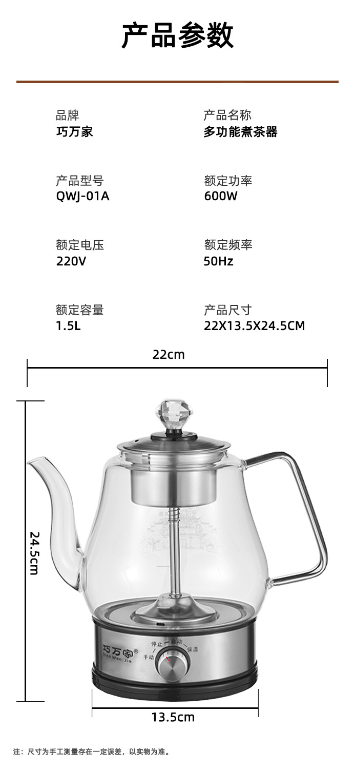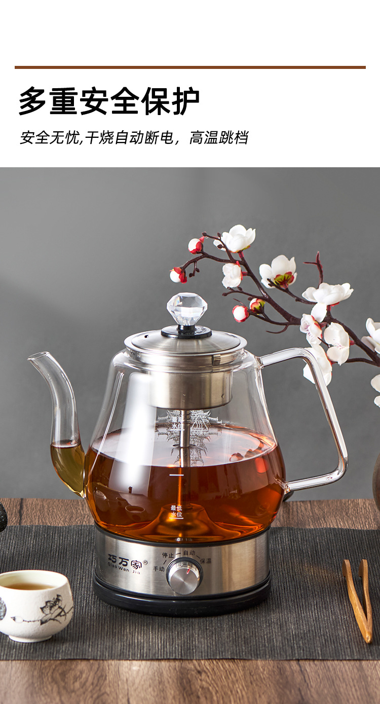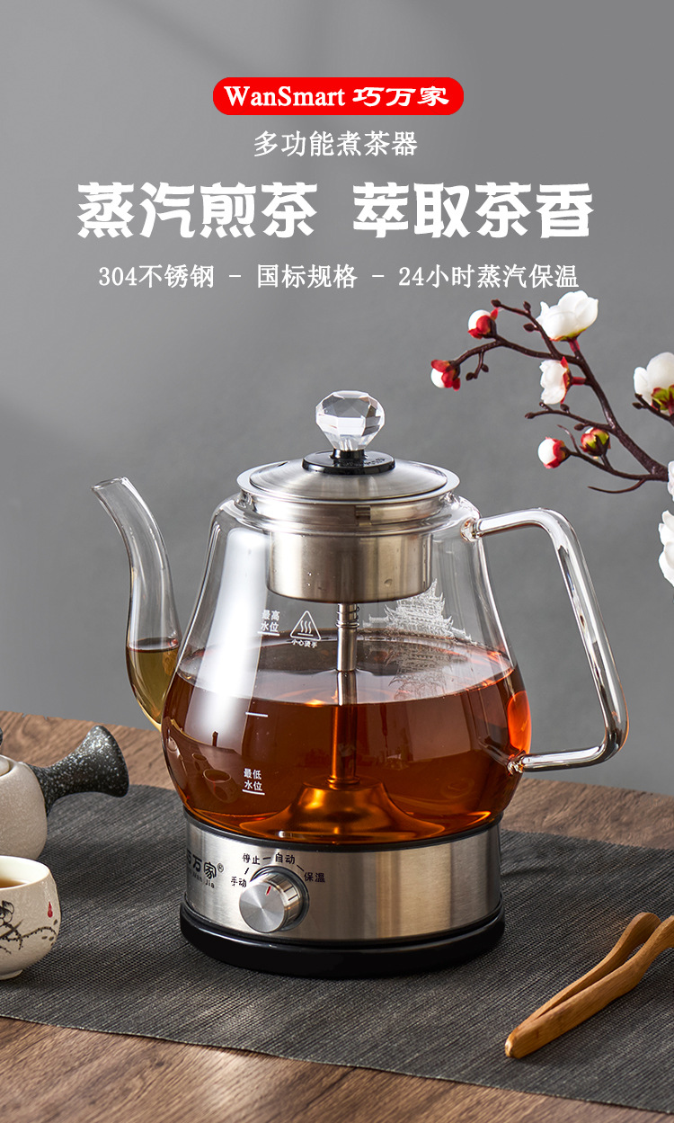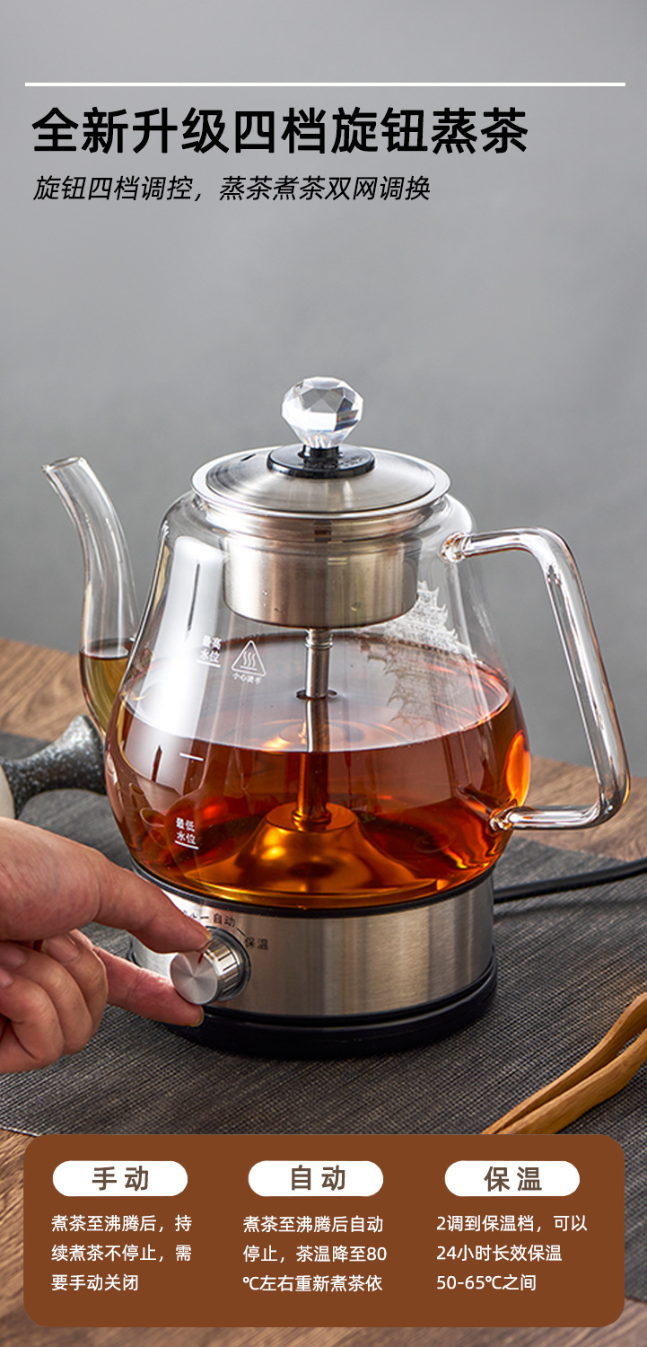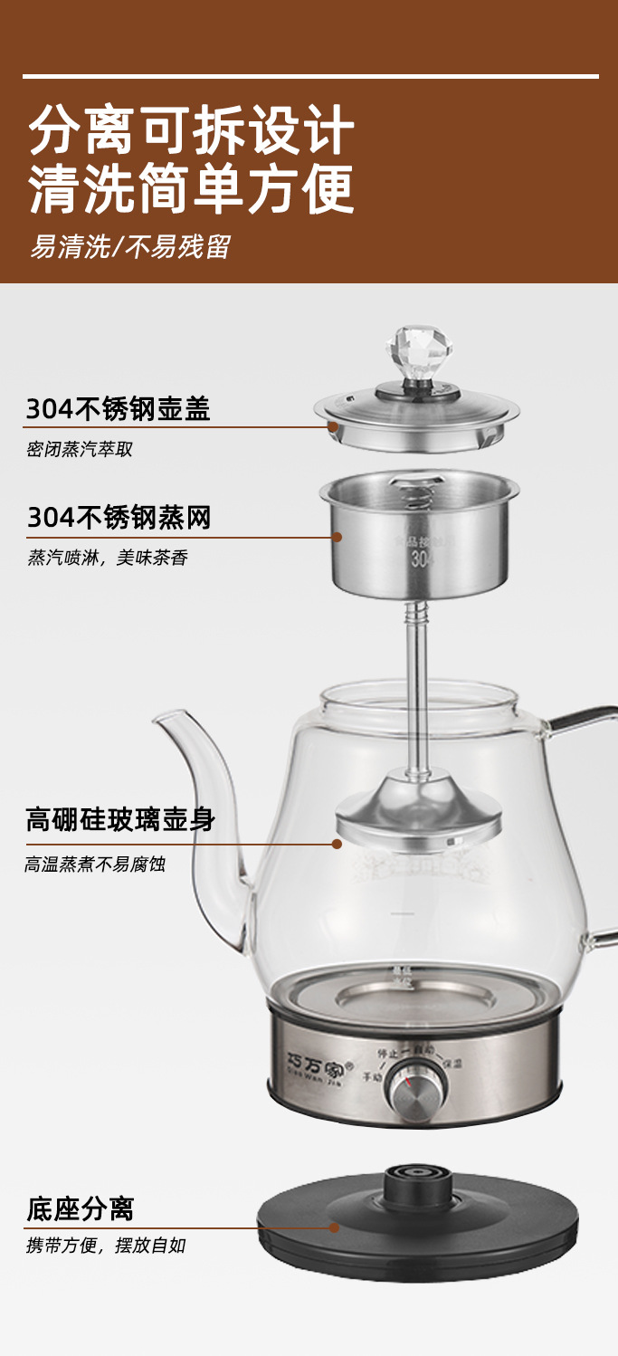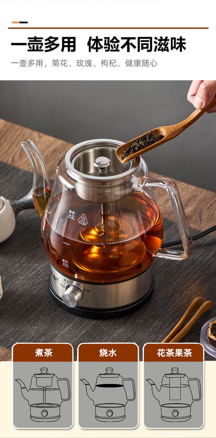 产品名称:液体加热器(煮茶器) 材质:高硼硅玻璃,食品级ABS,304不锈钢发热盘