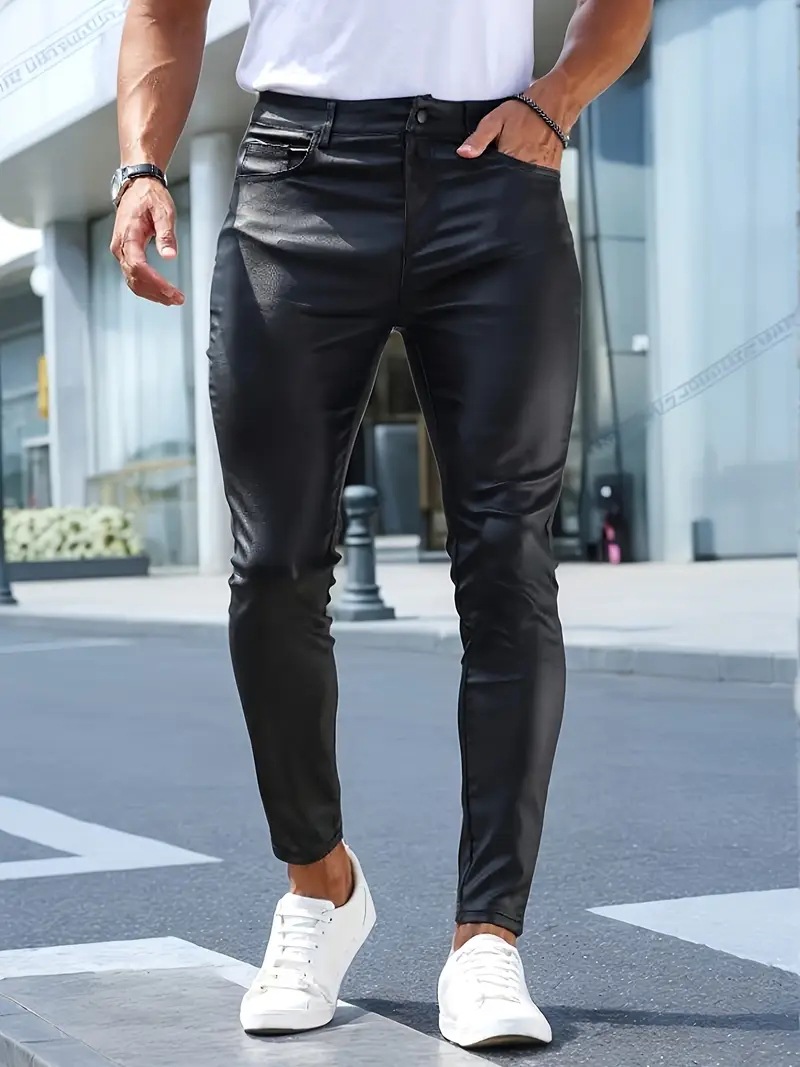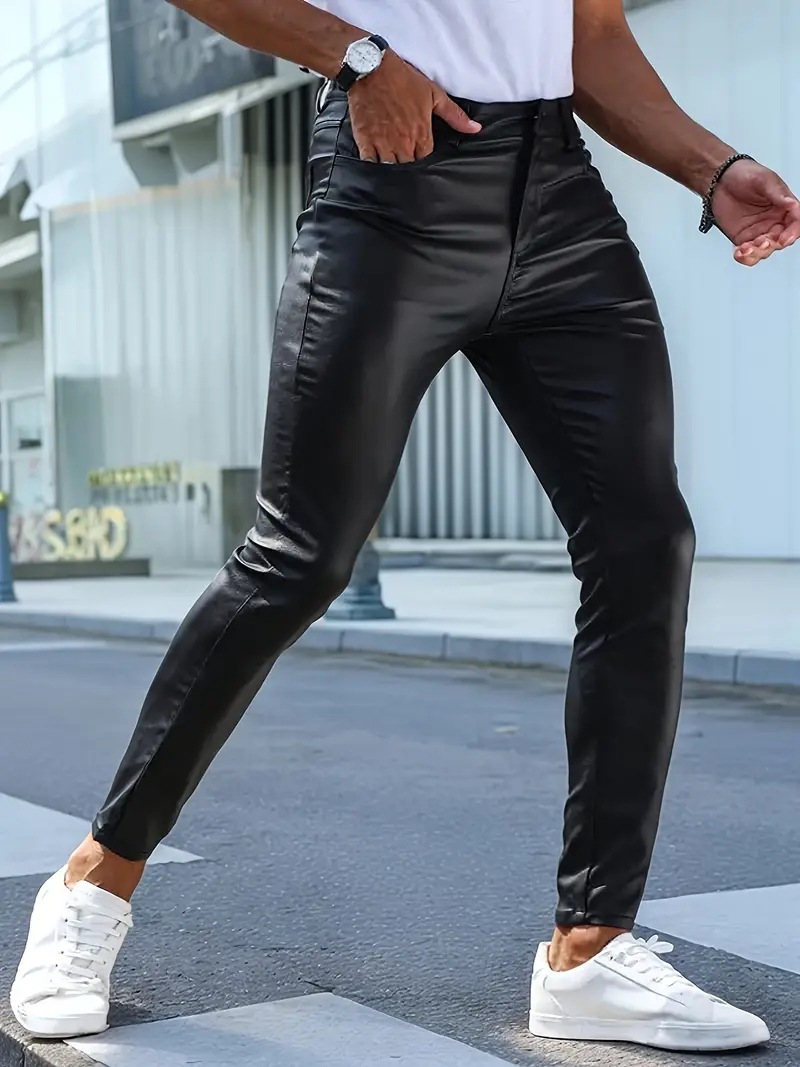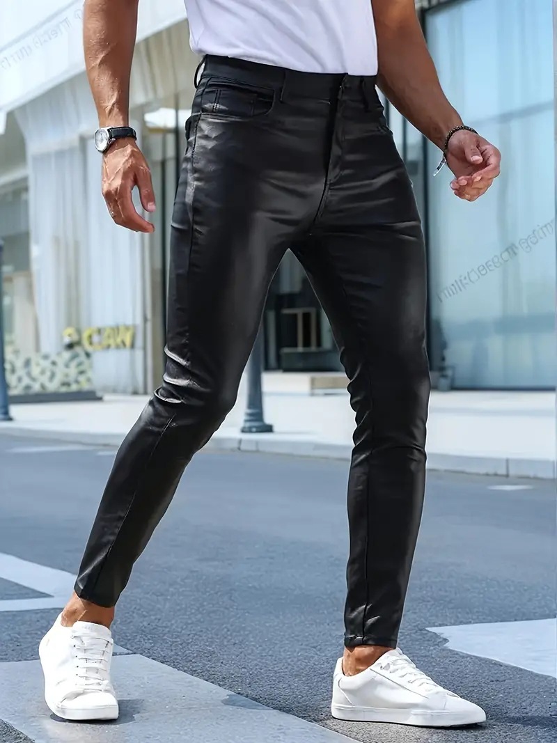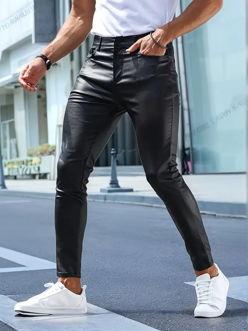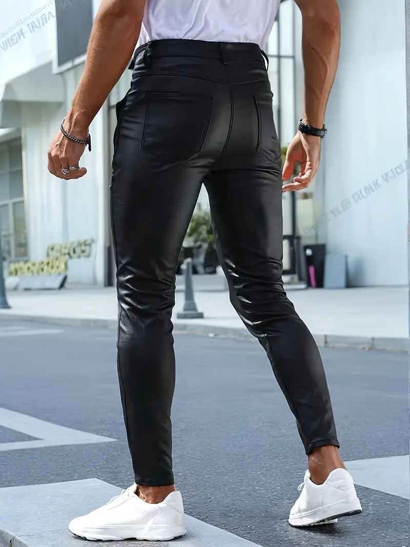 Мужские кожаные брюки для мотоциклистов, облегающие, повседневные, из искусственной кожи, для активного отдыха