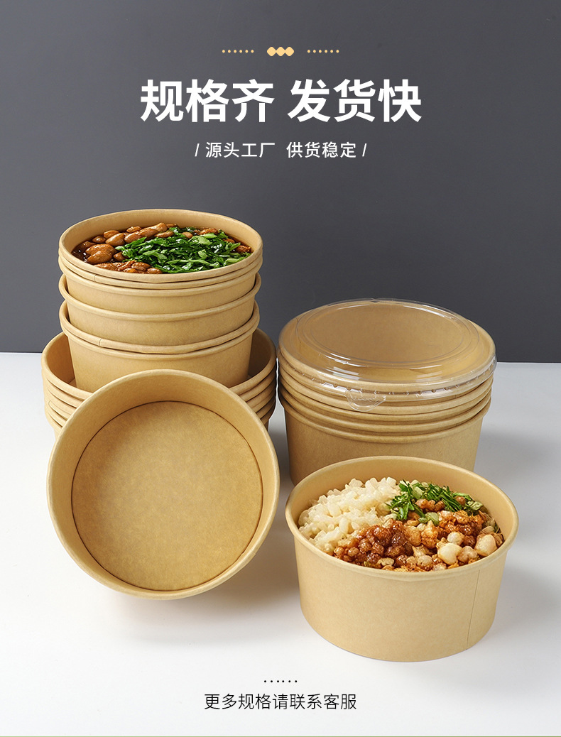 Одноразовая упакованная коробка с крышкой крафт-бумага миска поддерживает индивидуальные одноразовые утолщенные коробки для еды на вынос рисовая чаша салатница миска