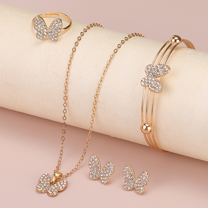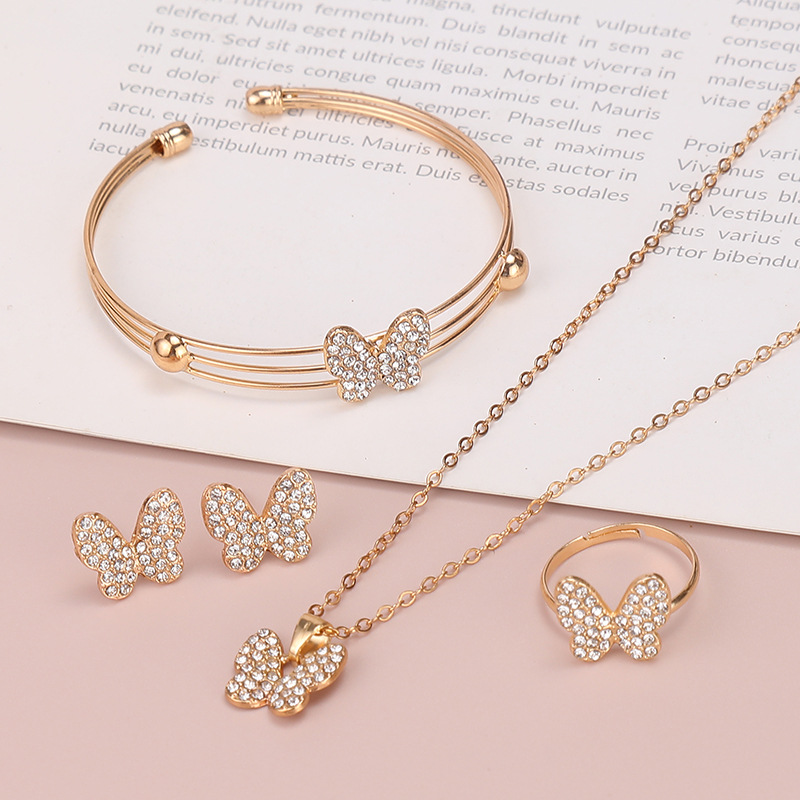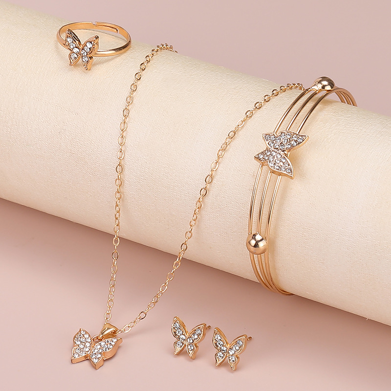Европейский и американский ювелирный набор мода бабочка любовь ювелирные изделия ожерелье серьги кольцо браслет набор из четырех частей на месте