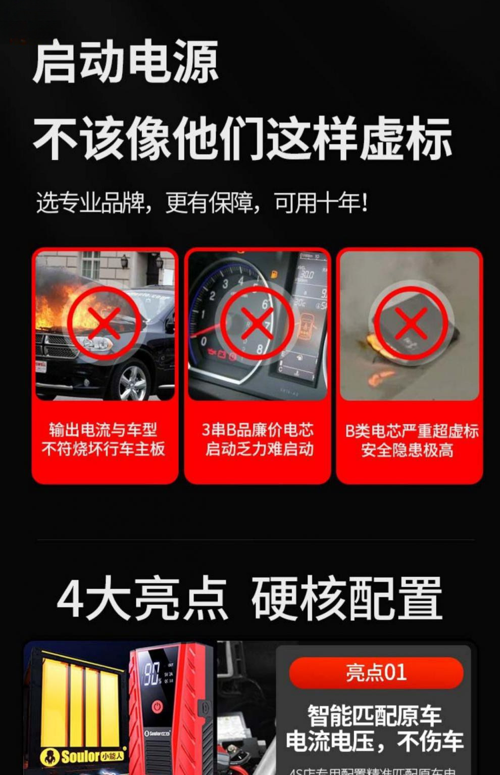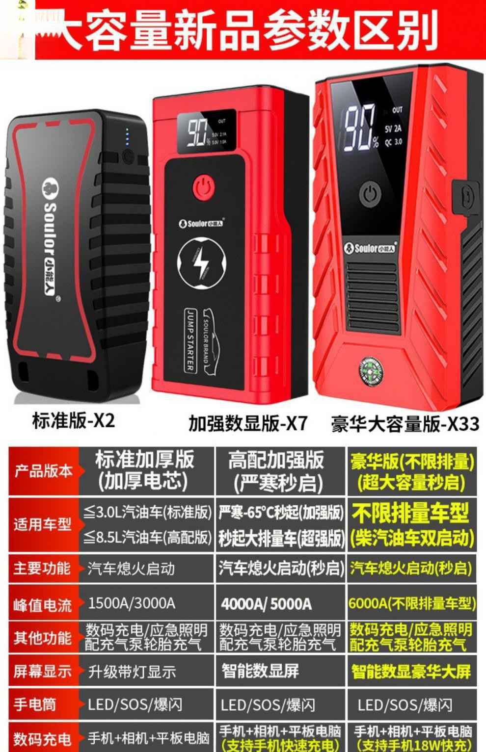 Специальная версия (старт 1,3 или меньше малого рабочего объема) + зажим для аккумулятора + кабель для зарядки; Версия с утолщенным сердечником аккумулятора (начинать с объема ниже 3,0) + зажим для аккумулятора + кабель для зарядки; Утолщенная версия быстрого старта (мгновенный запуск ниже 6,0) + жирный зажим + кабель для зарядки; Высококачественная версия (сильный старт ниже 9,5) + смелый зажим + высококачественная кожаная сумка; Улучшенная версия с большим экраном (Yanhuan-65℃Секунды) + жирный клип + высококачественная кожаная сумка; Версия с супермгновенным запуском (неограниченный объем) + жирный зажим для аккумулятора + высококачественная кожаная сумка; Супер умная версия (неограниченный объем) + умный зажим с защитой от короткого замыкания + высококачественная кожаная сумка + кабель для зарядки; Супермногофункциональная версия (неограниченный объем) + с воздушным насосом + умный зажим с защитой от короткого замыкания + кожаная сумка; Роскошная версия большой емкости (модели с неограниченным объемом) + яркий зажим + кожаная сумка + быстрая зарядка мобильного телефона; Роскошная смарт-версия (модели с неограниченным объемом) + интеллектуальный зажим для защиты от короткого замыкания + быстрая зарядка мобильного телефона + кожаная сумка; Роскошная многофункциональная версия (модели с неограниченным объемом) + с воздушным насосом + интеллектуальным зажимом для защиты от короткого замыкания + кожаная сумка; [Прямые продажи от бренда + 100% подлинность] Выбор бренда, одобренного знаменитостями, более безопасен!; [Если вы не можете получить посылку, стоимость доставки будет возвращена в полном объеме] Возможна доставка SF Express + ускоренная доставка!; [90-дневная бесплатная пробная версия] Гарантированно новые батареи, аккумуляторные элементы не подлежат вторичной переработке!; Благодаря утолщенным аккумуляторам класса А автомобиль можно завести, даже если он полностью разряжен, и это можно сделать сразу!