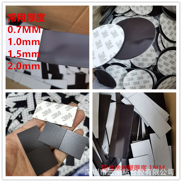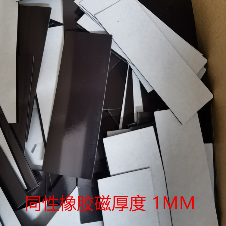 橡胶磁,分同性橡胶磁(普磁),和异性橡胶磁(强磁), 常用厚度有0.5MM,0.6MM,0.7MM,1MM , 1.5MM , 2MM . 厚度越厚磁力越强。