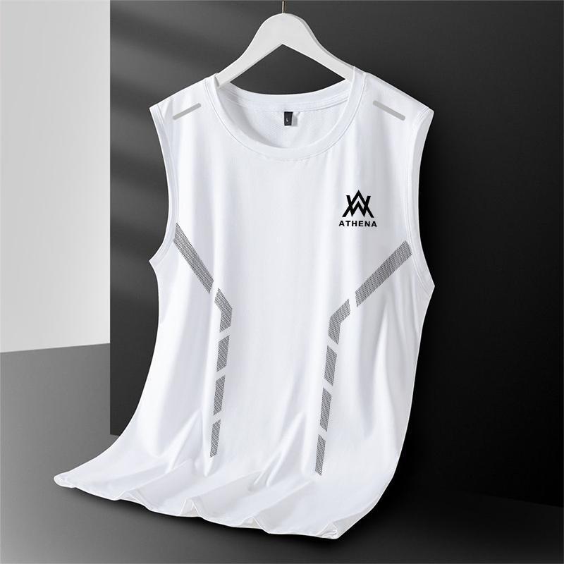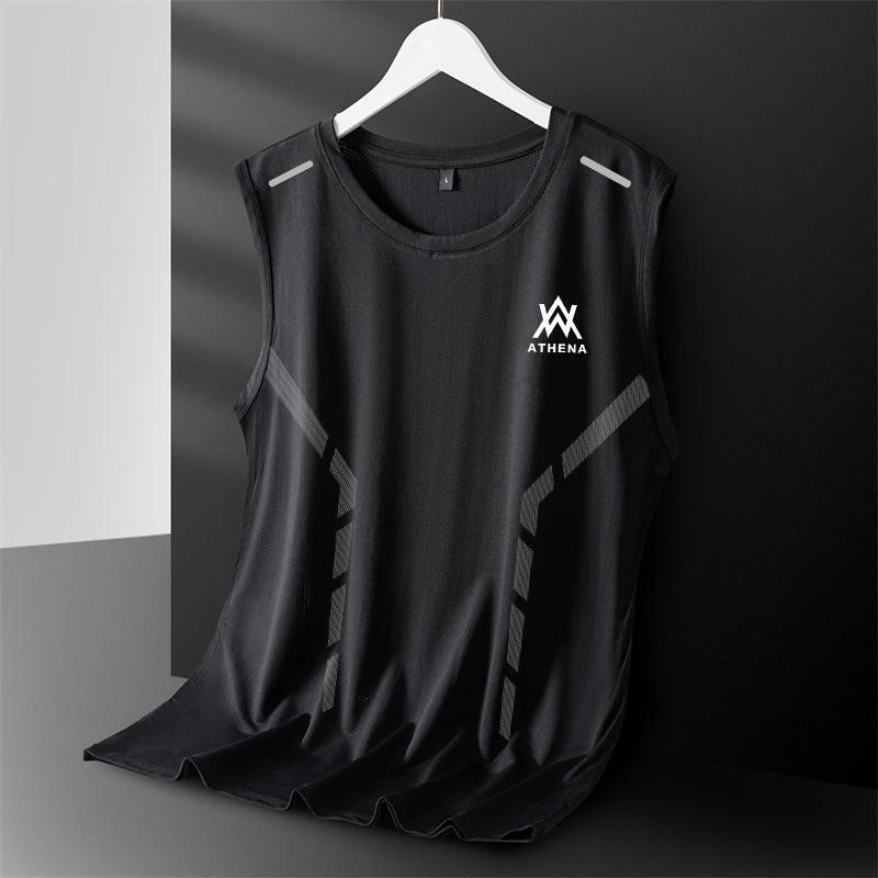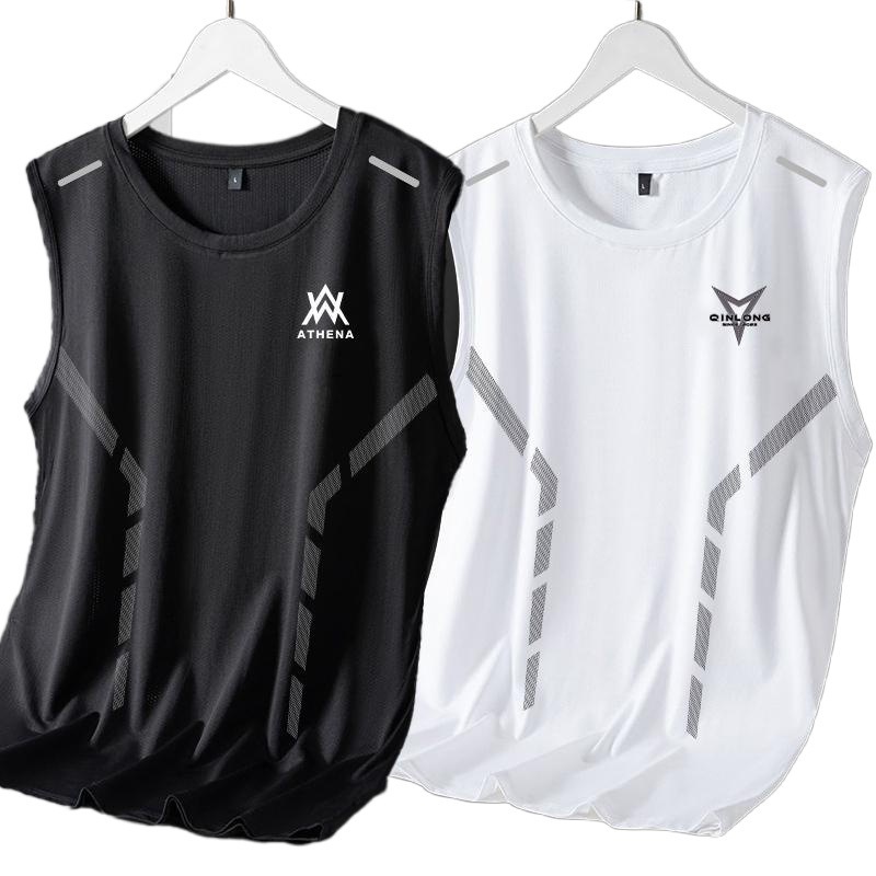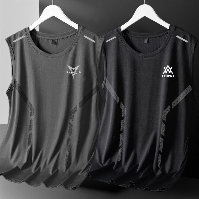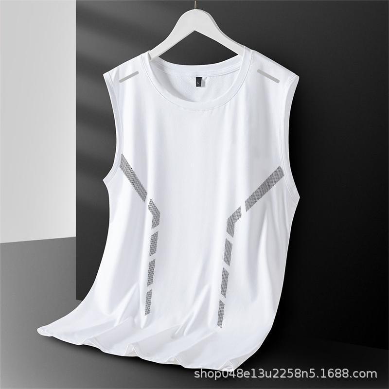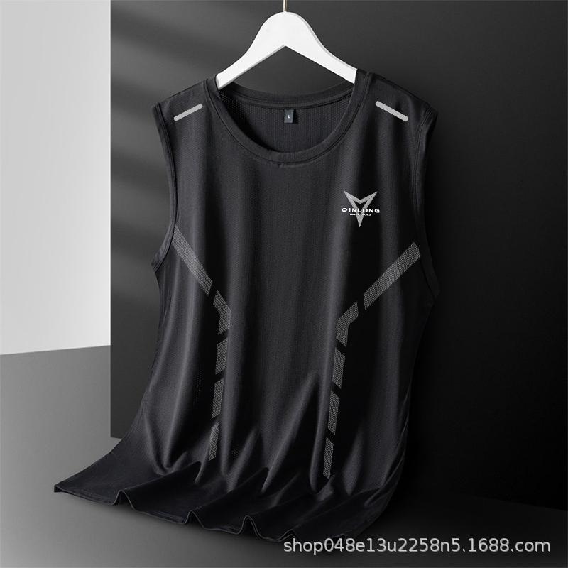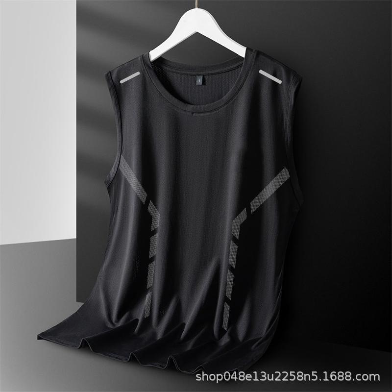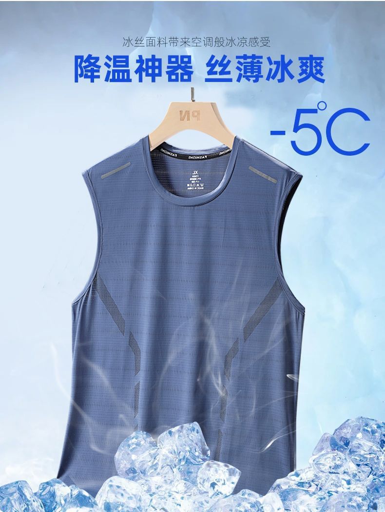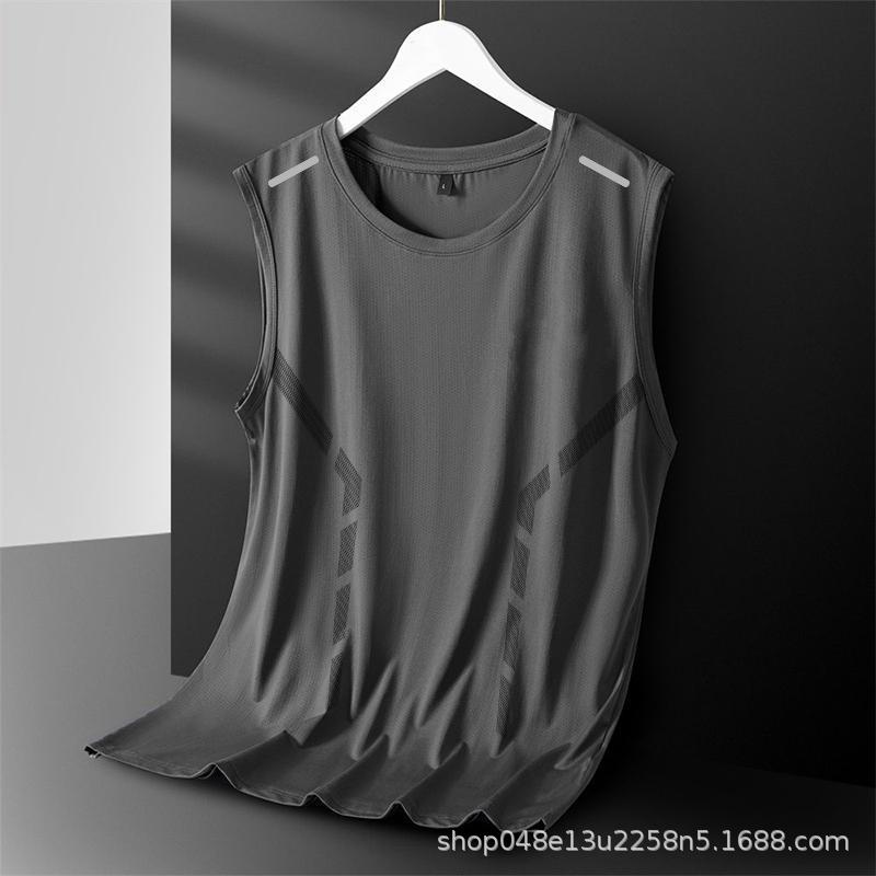 Летний мужской топ из ледяного шелка, быстросохнущий, с вырезом, сетчатый, без рукавов, больших размеров, свободный, спортивный, с рукавами-крылышками