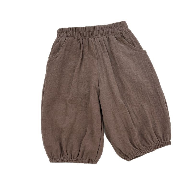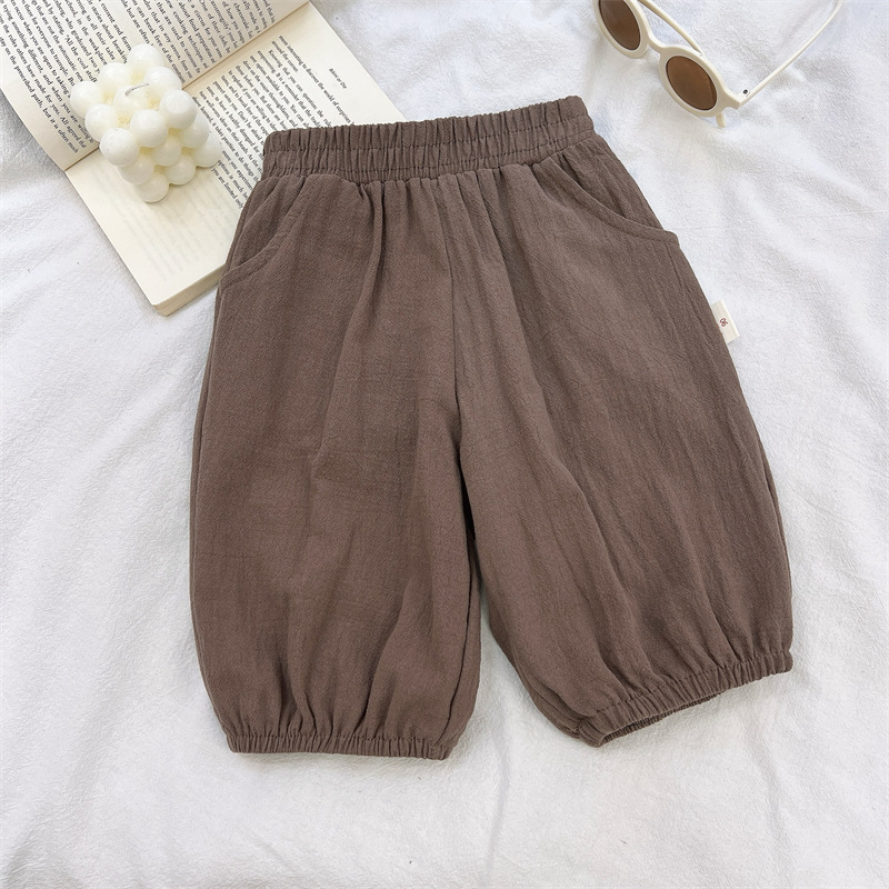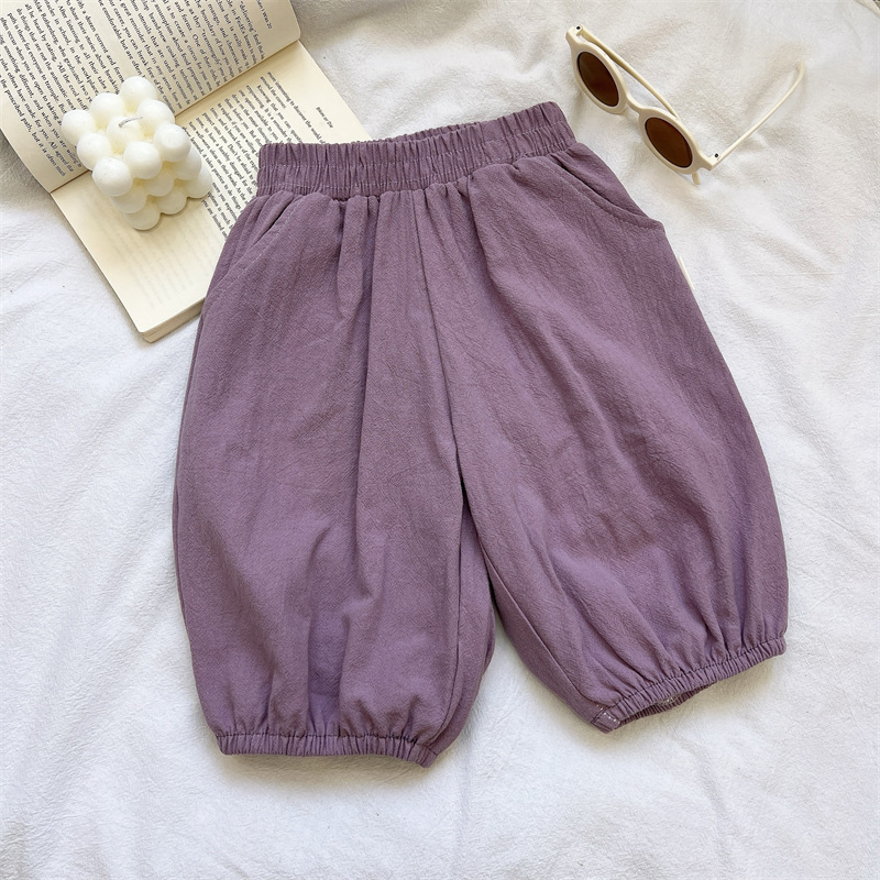 Детские укороченные брюки из хлопка и льна, брюки для девочек, новые летние повседневные брюки в корейском стиле, верхняя одежда для малышей, универсальные шаровары.