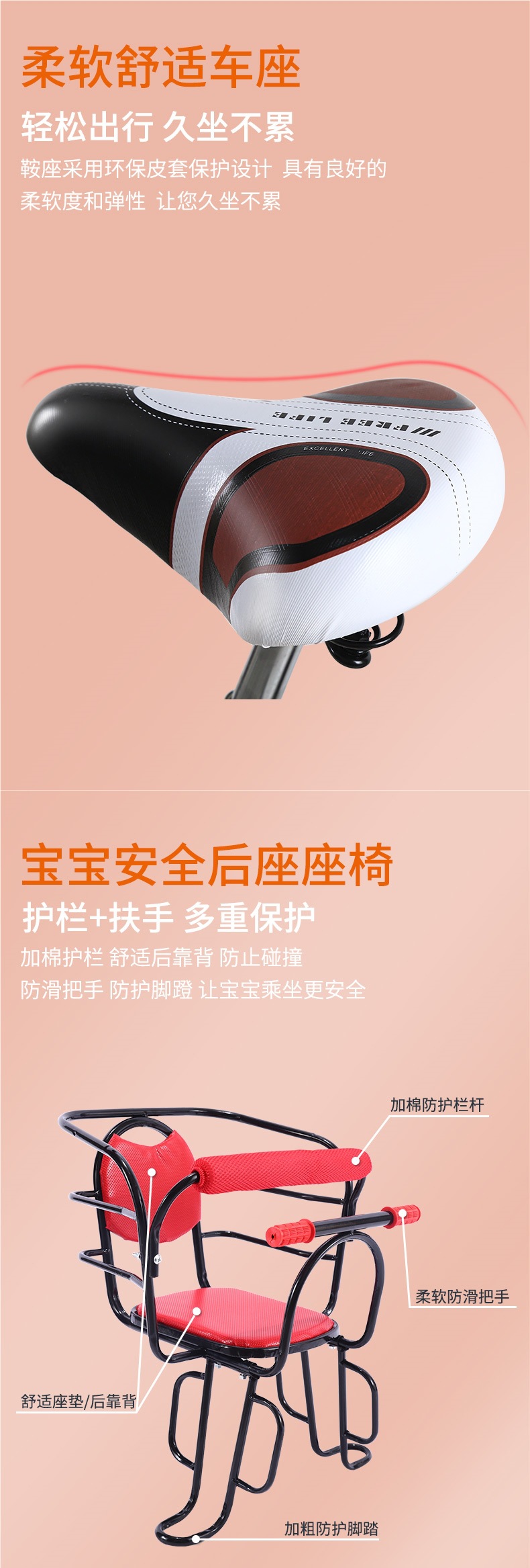Велосипед для родителей и детей, для женщин, взрослых с ребенком, легкий двухместный трехместный велосипед для взрослых для подвоза и забора детей, может перевозить ребенка