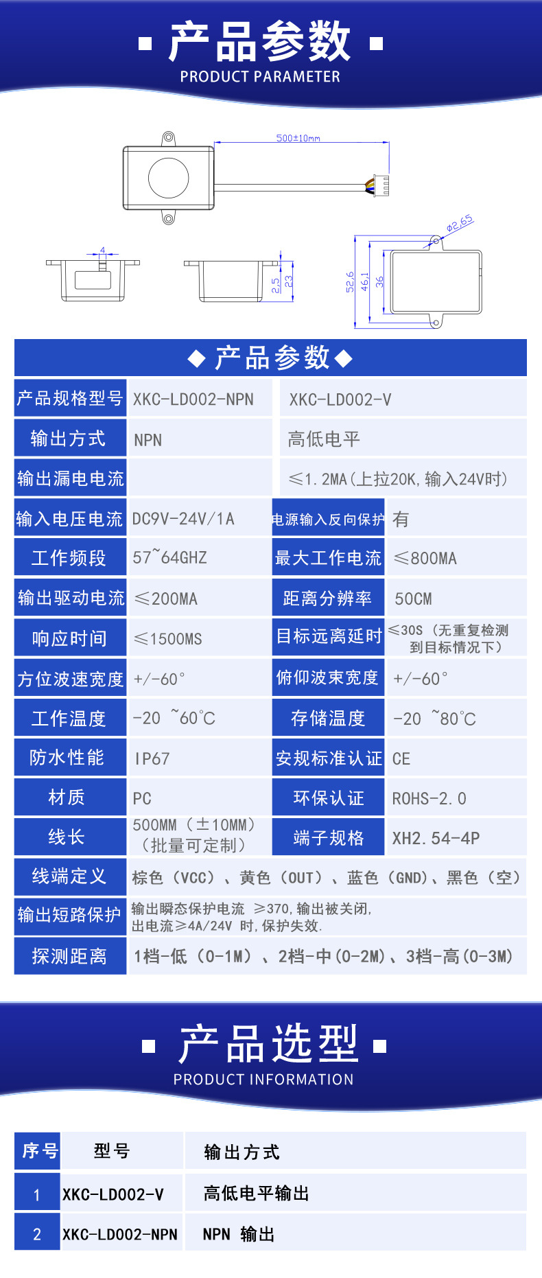 Датчик присутствия человека 60ГГц XKC-LD002, миллиметровый радар, интеллектуальный выключатель с функцией обнаружения человека