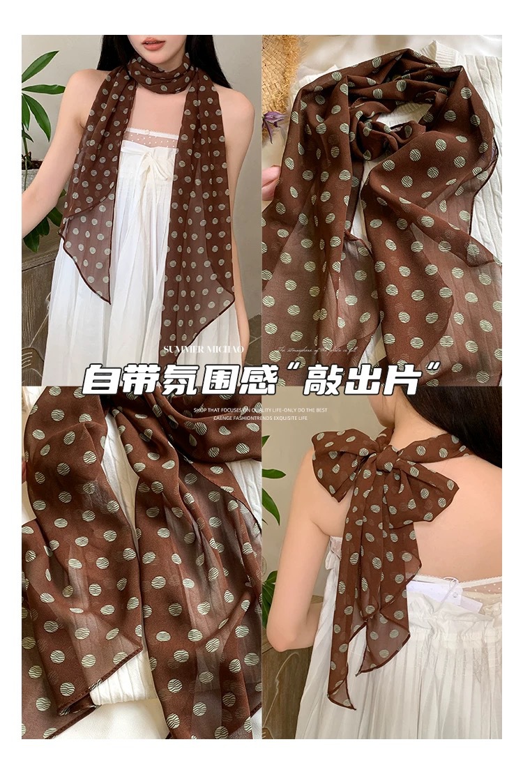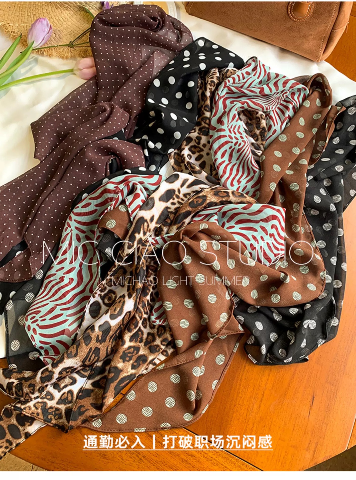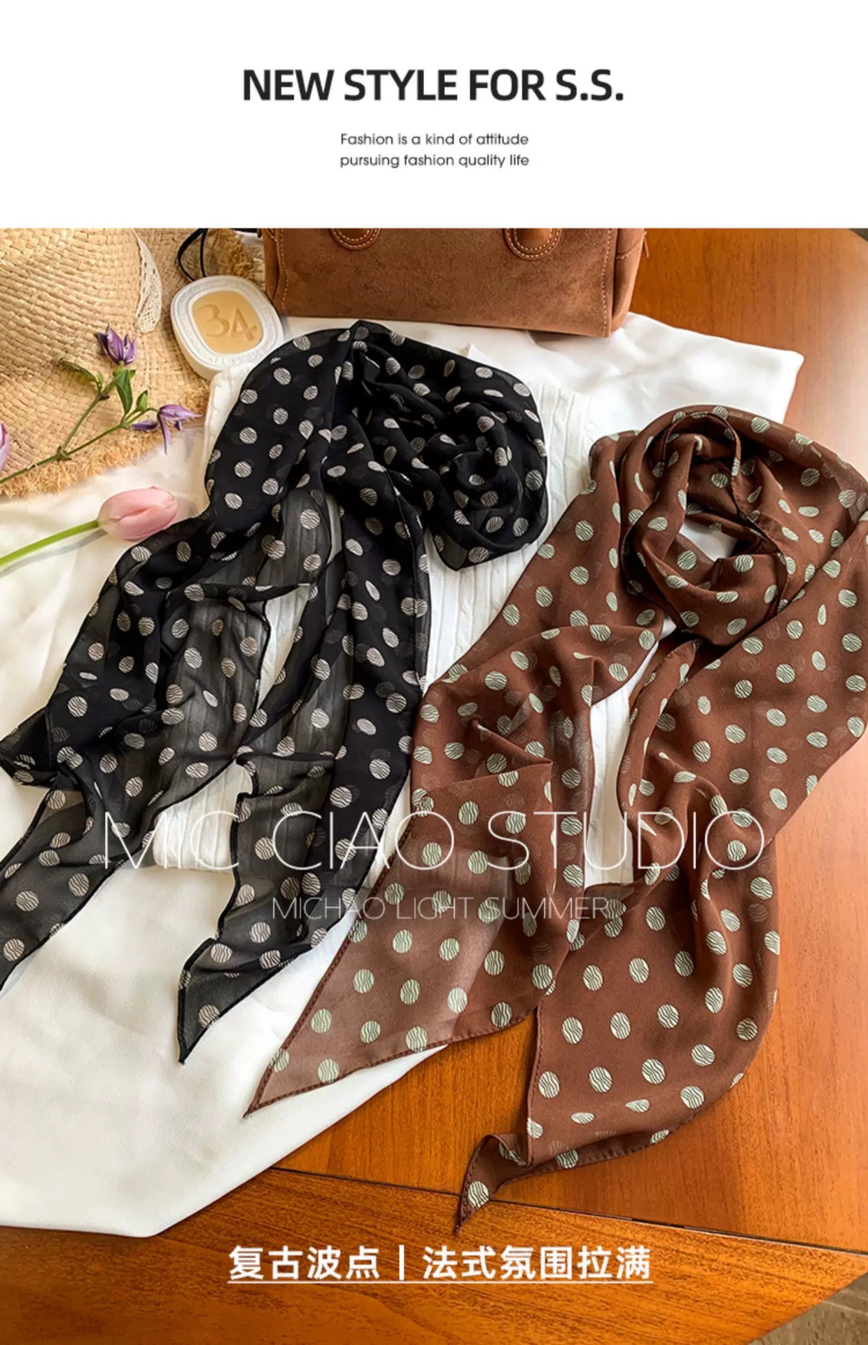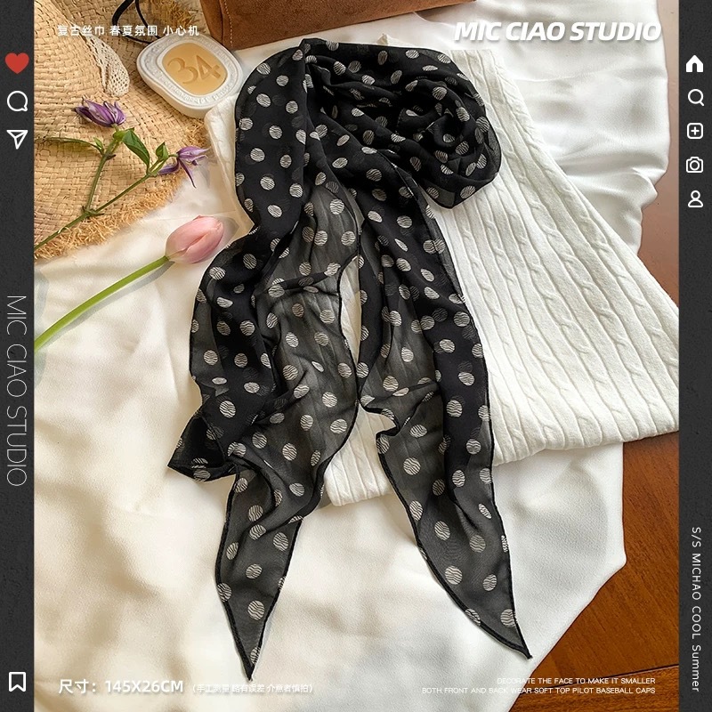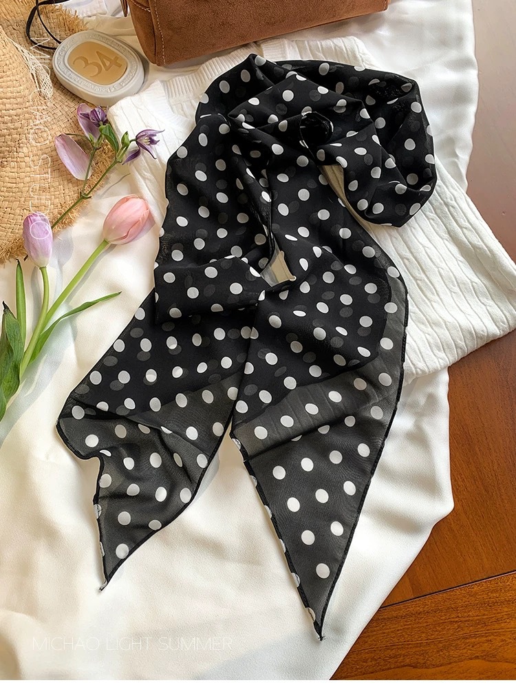 Черная волновая точка шарф шейный ремень для волос Advanced Чувство 2025 Новый длинный шарф весной и летом тонкий декоративный пояс женский