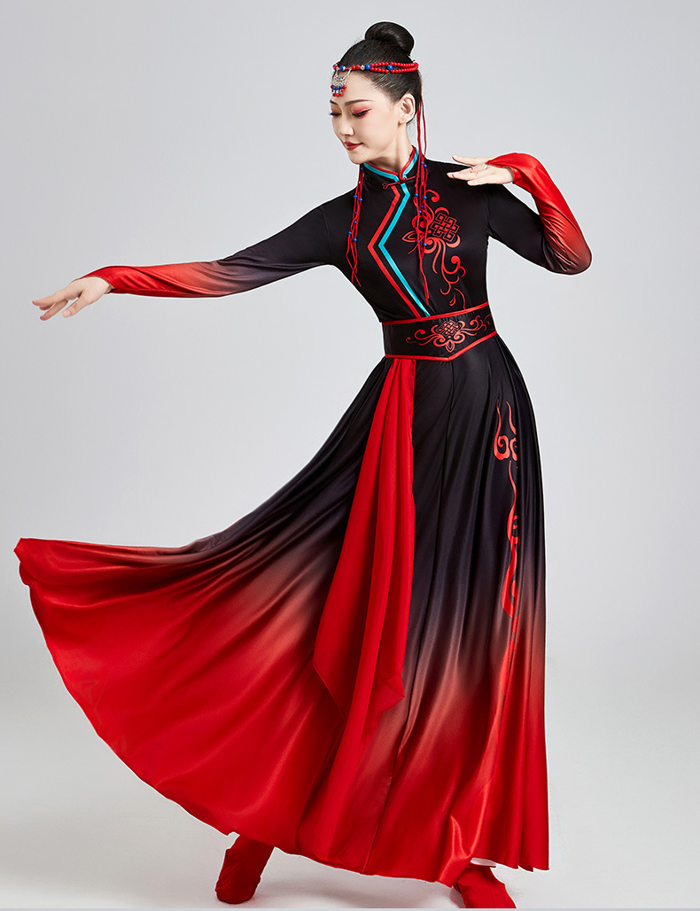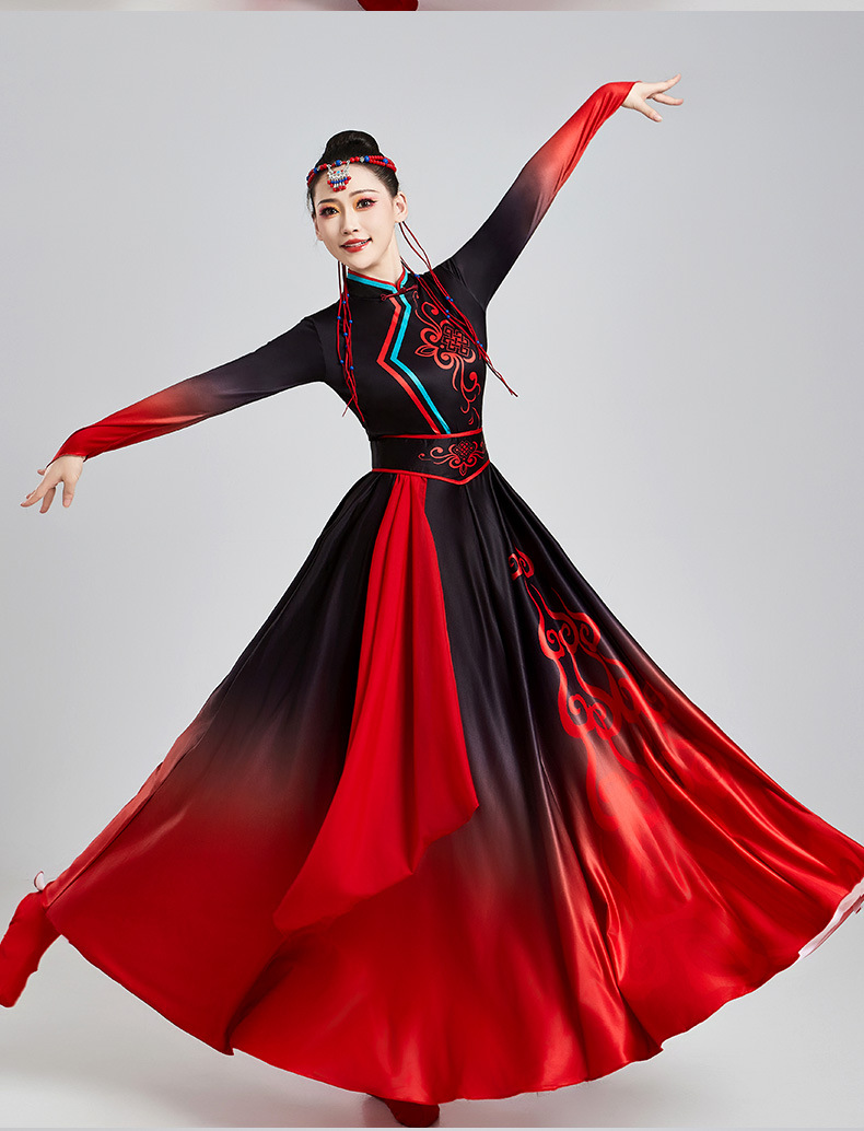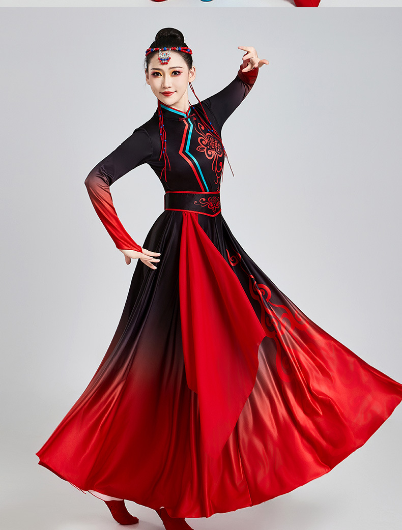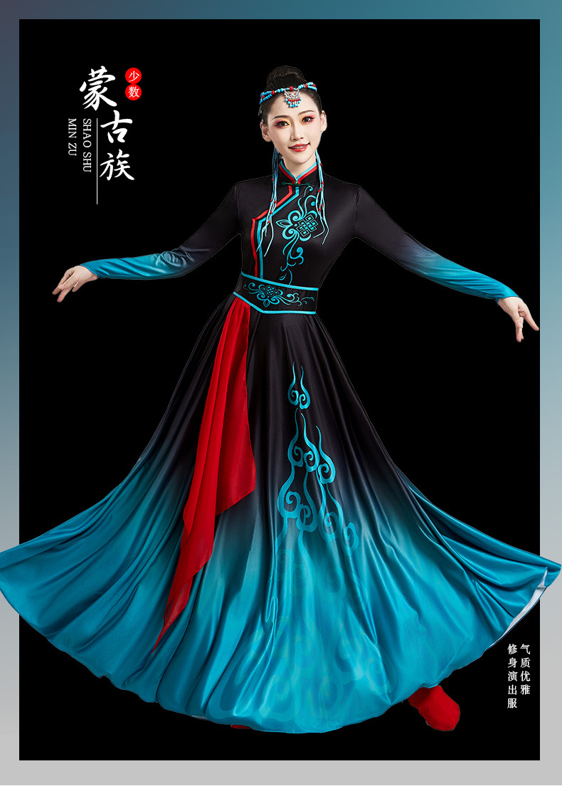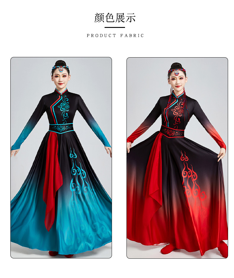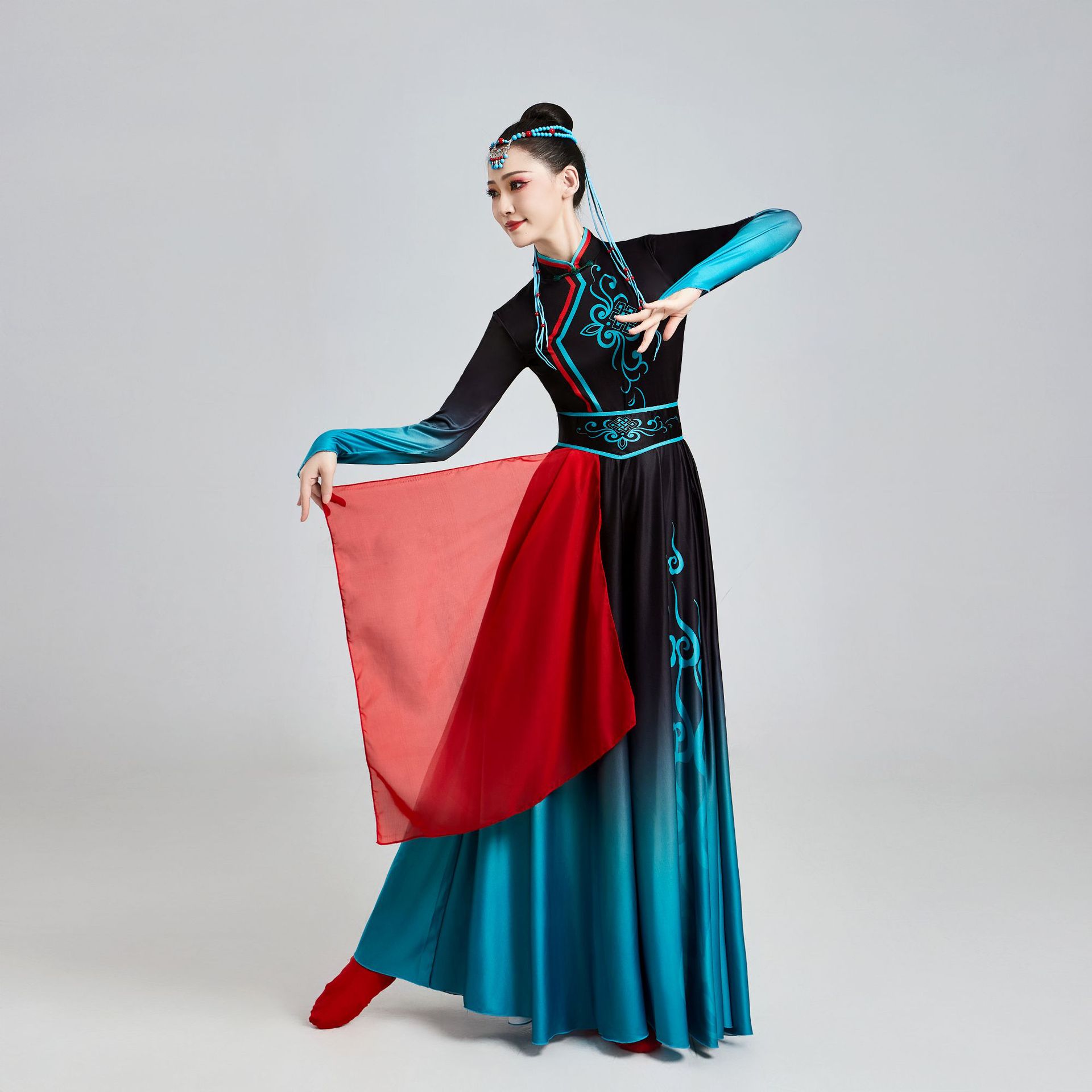 Новый монгольский танцевальный костюм, одежда для выступлений для женщин, современный этнический стиль, танцевальный костюм на пастбищах Внутренней Монголии, летний длинный стиль