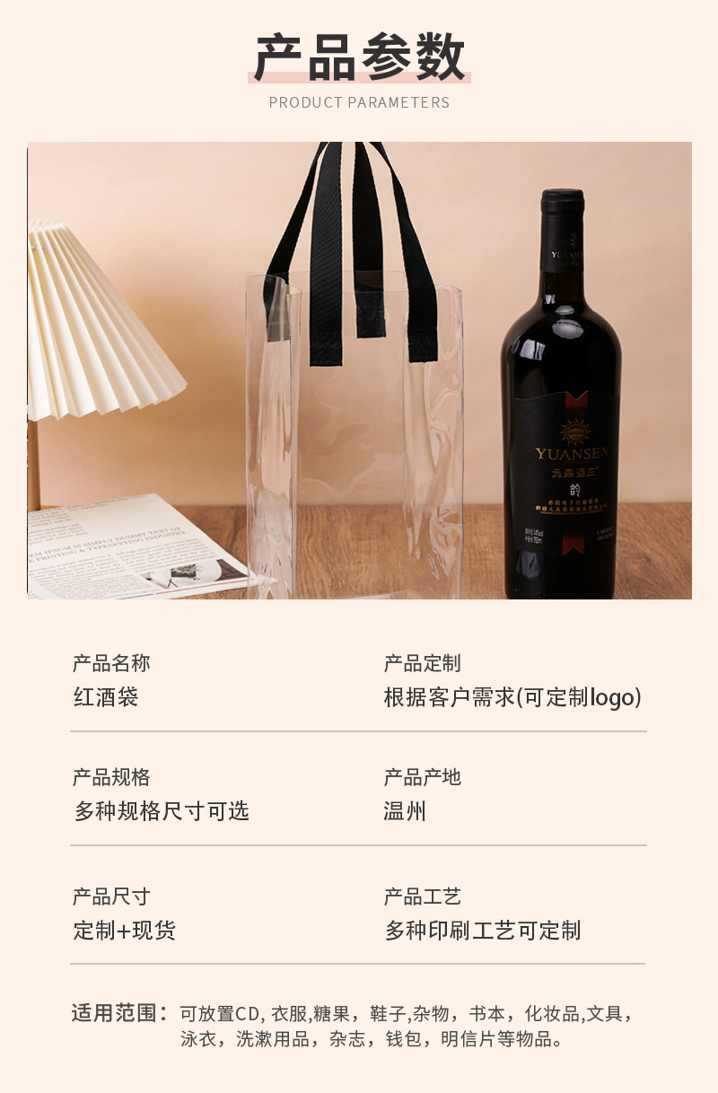 Прозрачная сумка-холодильник для вина из ПВХ, герметичная, красного цвета, с возможностью нанесения индивидуального дизайна, подарочная упаковка