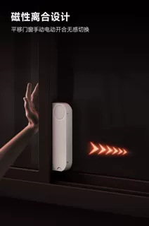 Интеллектуальный открыватель раздвижных окон Lingpu WD1 подключен к автоматическому открывателю окон Mijia для раздвижных дверей и окон.