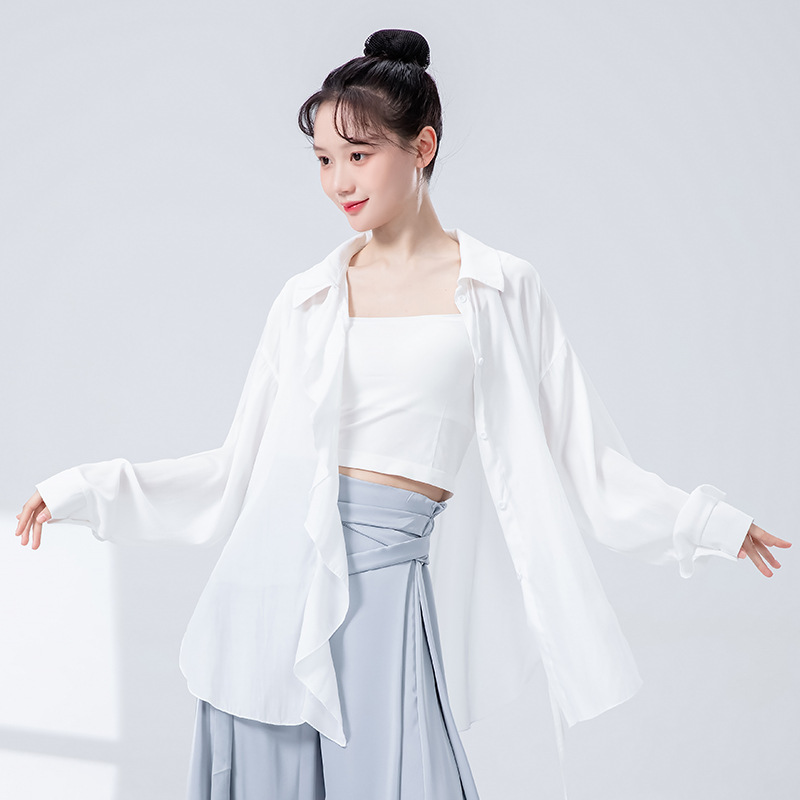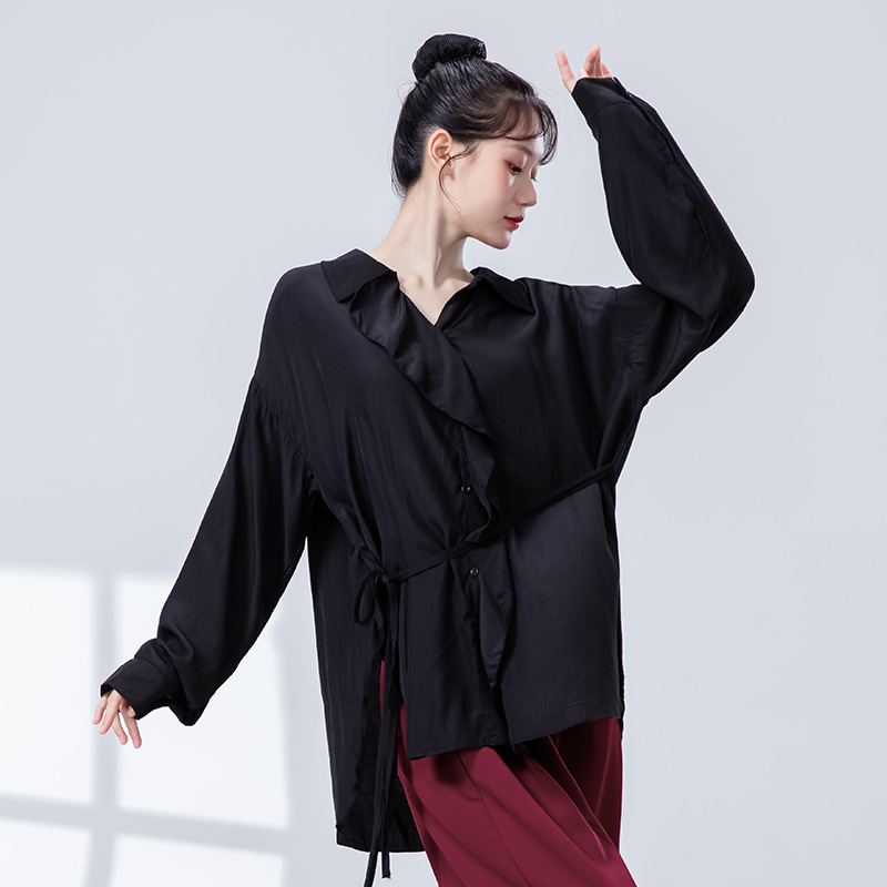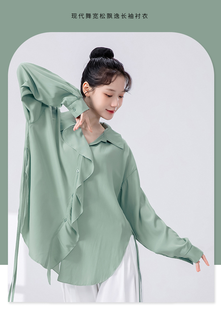 Свободная рубашка с длинными рукавами для современного танца, унисекс, для джаза, китайских танцев, для выступлений взрослых, танцевальная одежда, топ