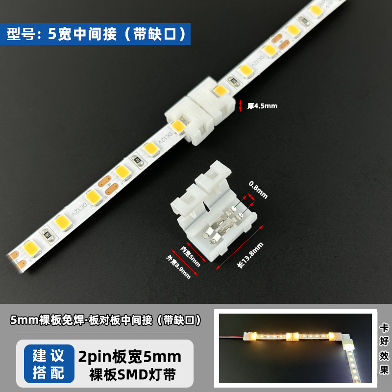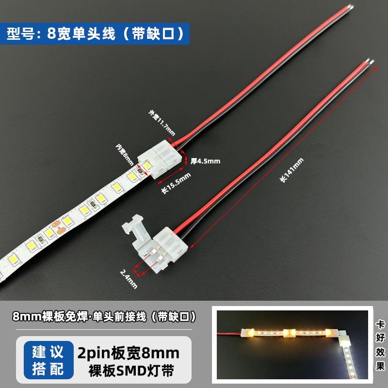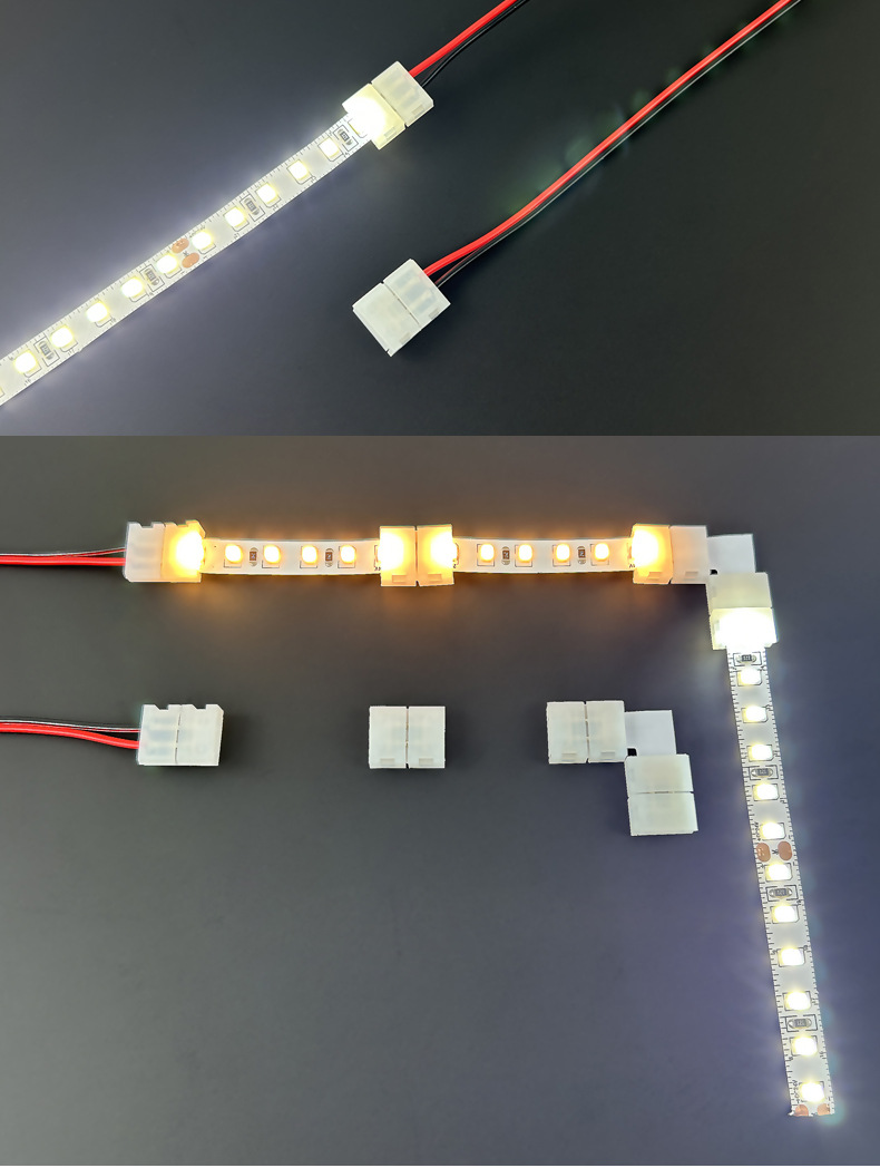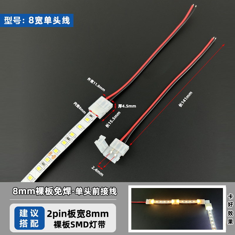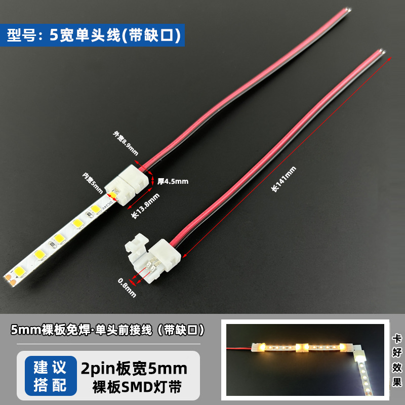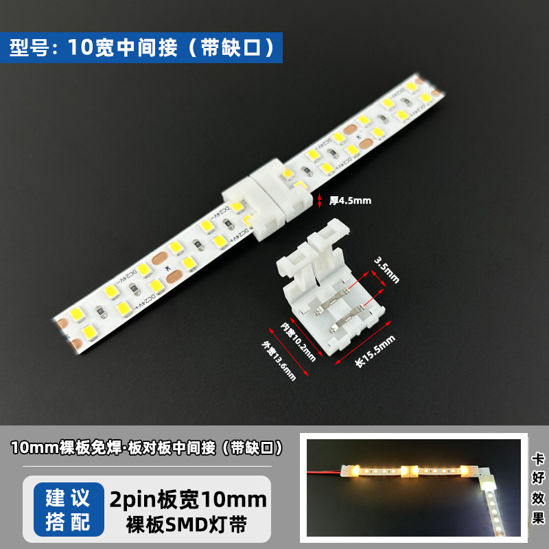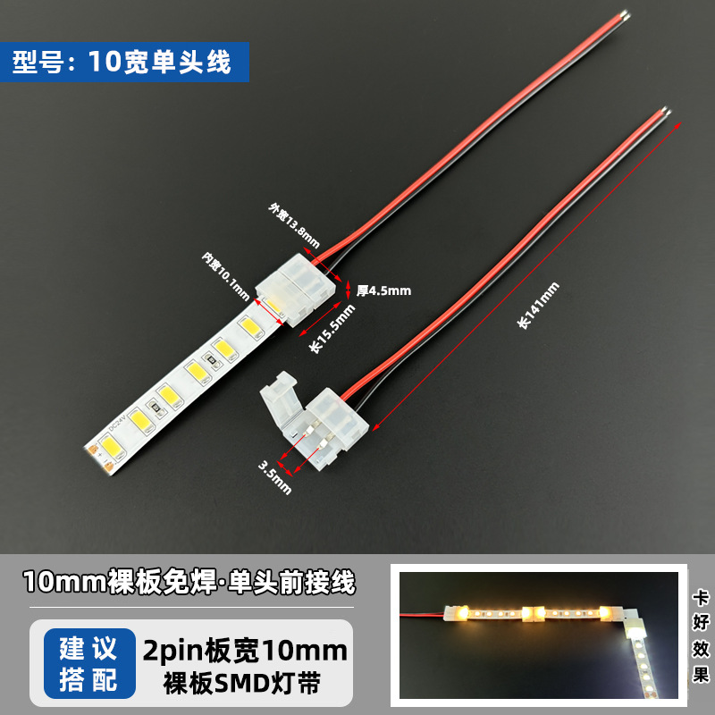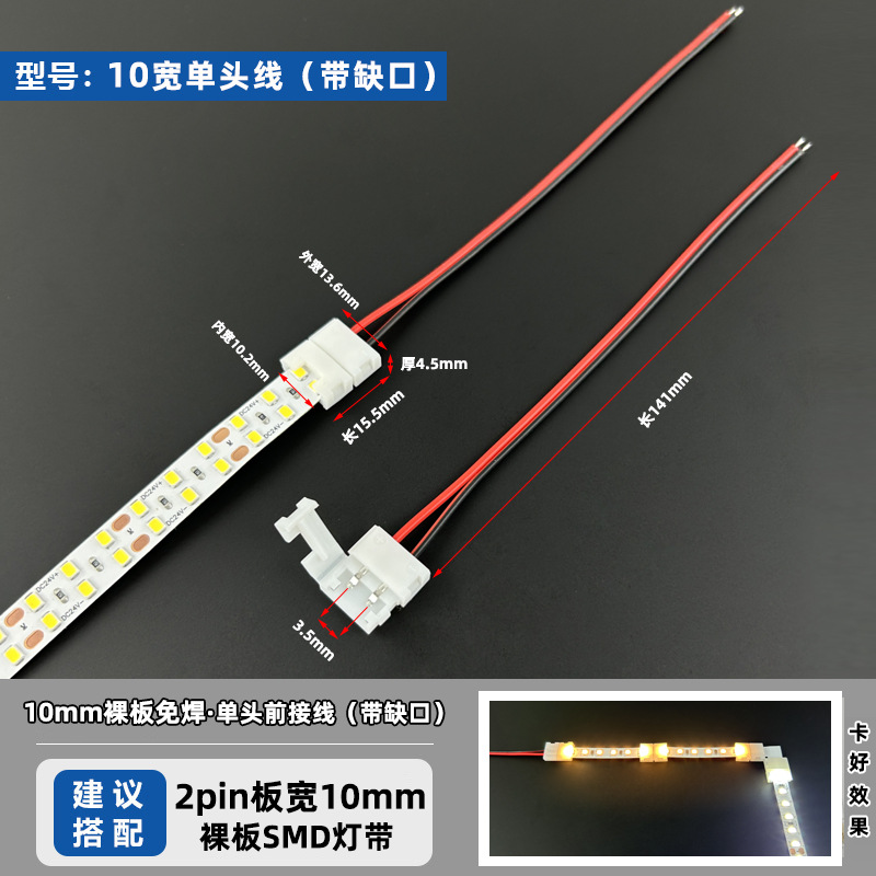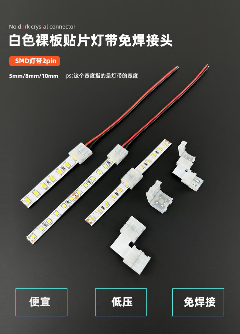 Светодиодная лента, белая голая плата, разъем без пайки, соединительная линия 5 мм/8 мм/10 мм, 2-контактный разъем/разъем низкого напряжения SMD