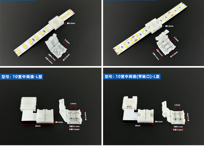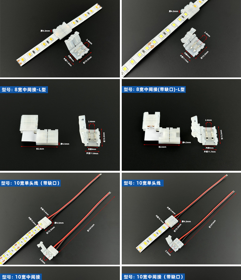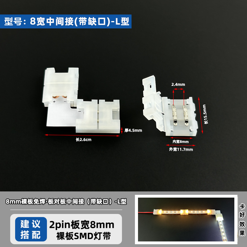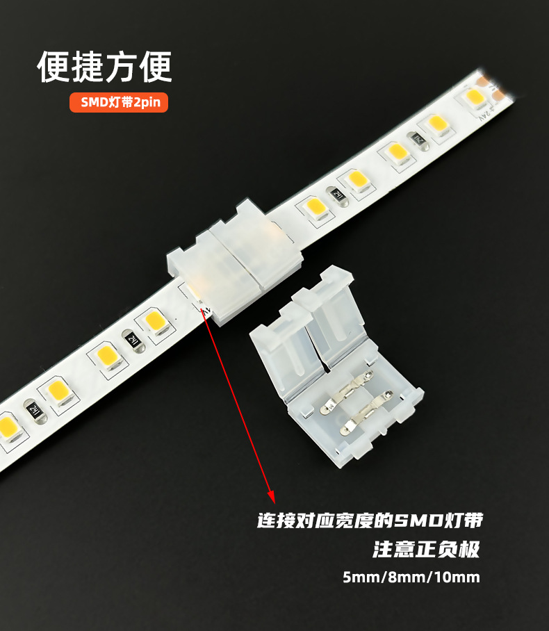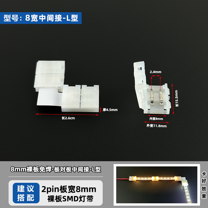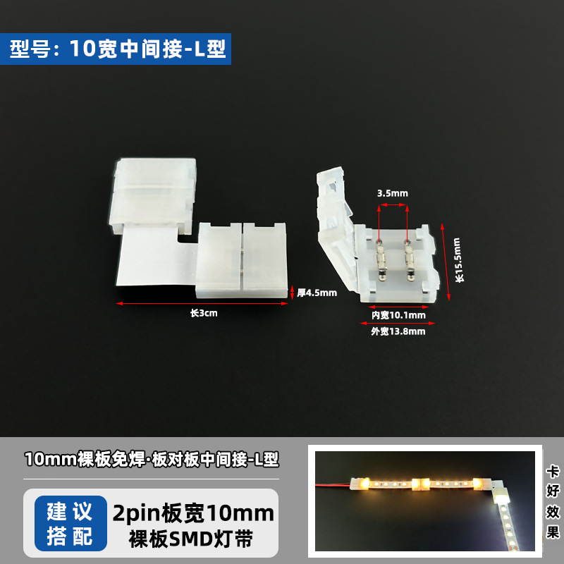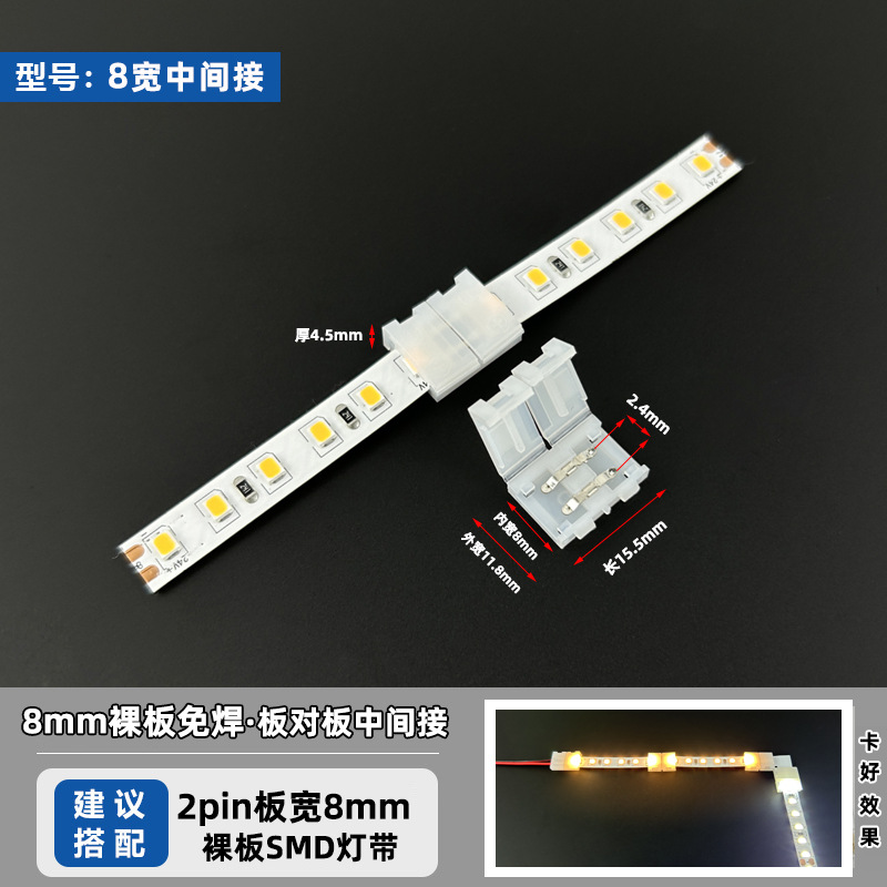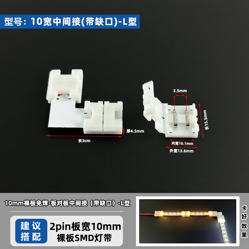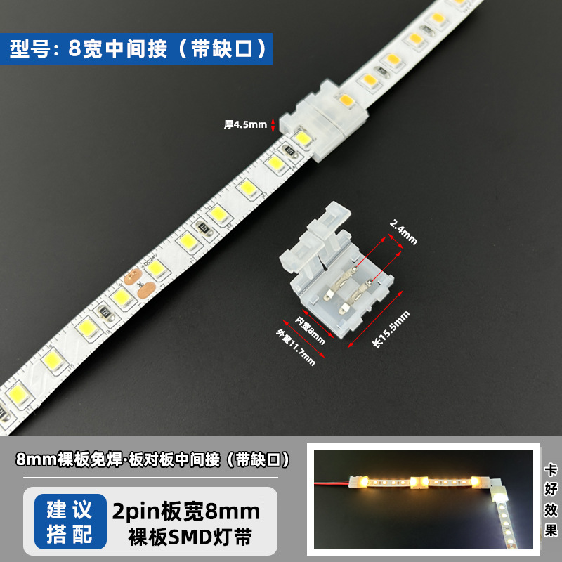 Светодиодная лента, белая голая плата, разъем без пайки, соединительная линия 5 мм/8 мм/10 мм, 2-контактный разъем/разъем низкого напряжения SMD